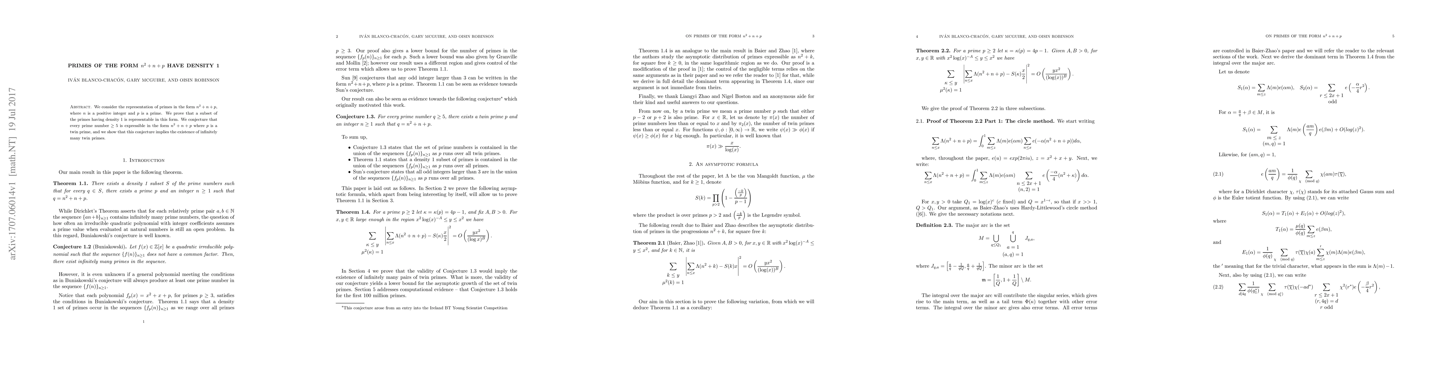 Researchers prove that a subset of primes with density 1 can be expressed as the sum of a prime, twice a triangular number, and a conjecture implies the existence of infinitely many twin primes.
