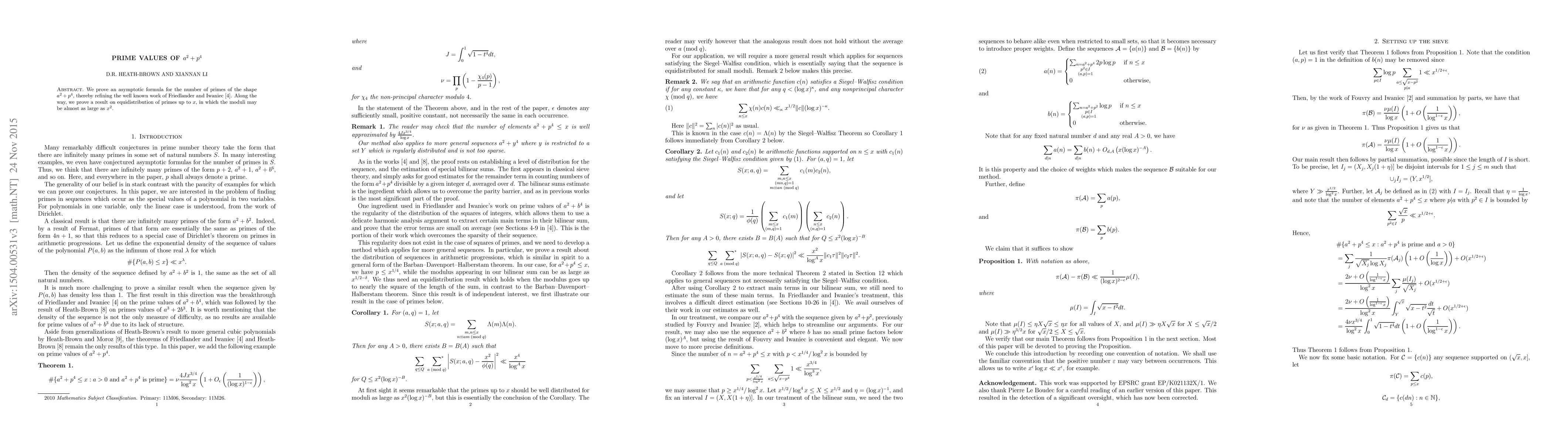 We prove an asymptotic formula for the number of primes of the shape $a^2 +p^4$, thereby refining the well known work of Friedlander and Iwaniec. Along the way, we prove a result on equidistribution of primes up to $x$, in which the moduli may be almost as large as $x^2$.