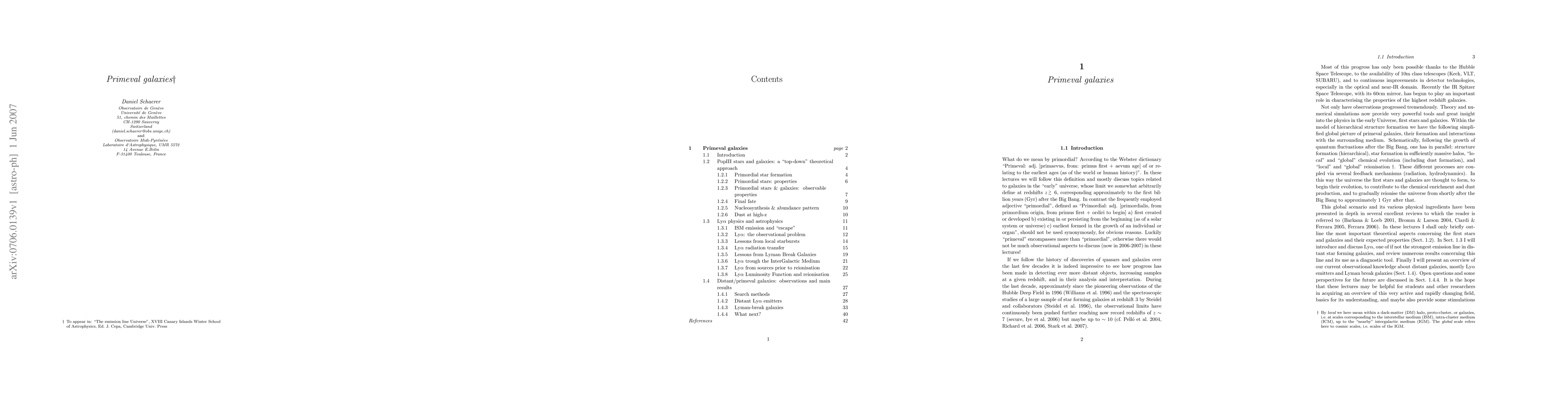 1) Introduction 2) PopIII stars and galaxies: a "top-down" theoretical approach 3) Lyman-alpha physics and astrophysics 4) Distant/primeval galaxies: observations and main results