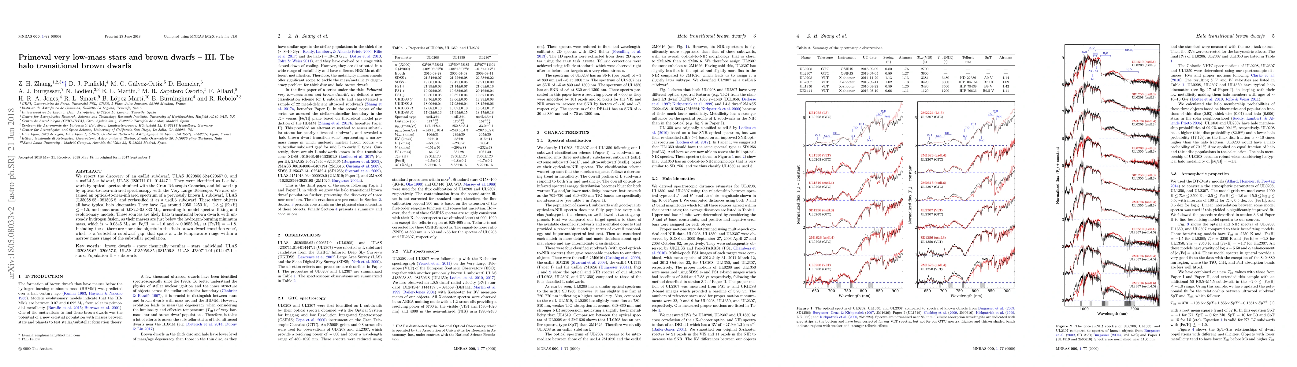 This paper reports the discovery of three halo transitional brown dwarfs, including two new subdwarfs and a reclassification of an existing one, all identified by optical and near-infrared spectra. These objects have low masses just below the hydrogen-burning minimum, suggesting unsteady fusion, and are part of the 'halo brown dwarf transition zone'.