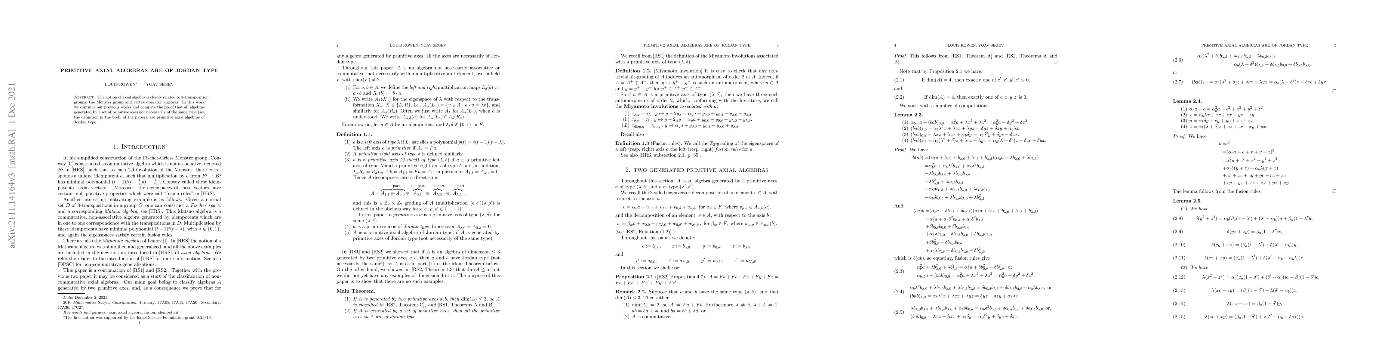 Summary: This paper completes the proof that all primitive axial algebras generated by a set of primitive axes, regardless of their types, are of Jordan type, furthering the connection between axial algebras and $3$-transposition groups, the Monster group, and vertex operator algebras.