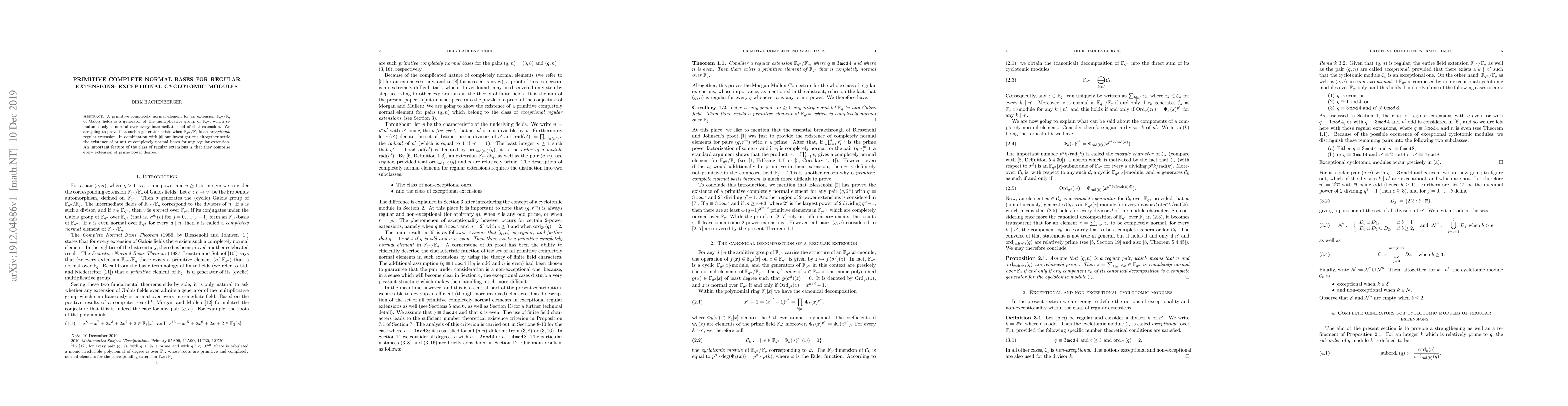 This paper proves the existence of a primitive completely normal element generator for 'exceptional' regular field extensions, crucially including all prime power degree extensions, thereby completing the understanding of primitive completely normal bases for any regular extension.