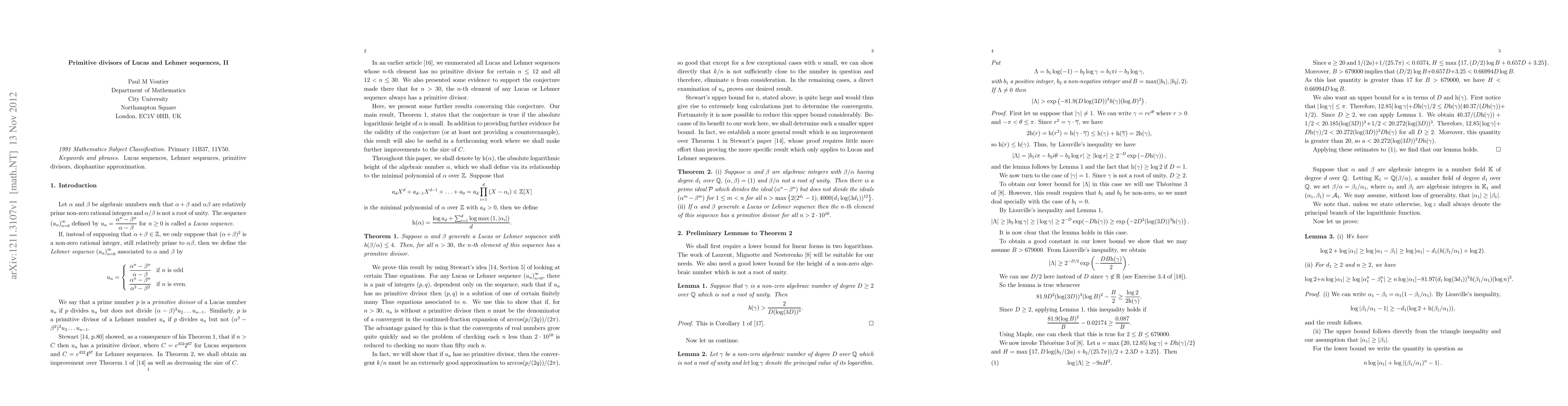 Let $\al$ and $\be$ be conjugate complex algebraic integers which generate Lucas or Lehmer sequences. We present an algorithm to search for elements of such sequences which have no primitive divisors. We use this algorithm to prove that for all $\al$ and $\be$ with $\hgt(\be/\al) \leq 4$, the $n$-th element of these sequences has a primitive divisor for $n > 30$. In the course of proving this result, we give an improvement of a result of Stewart concerning more general sequences.