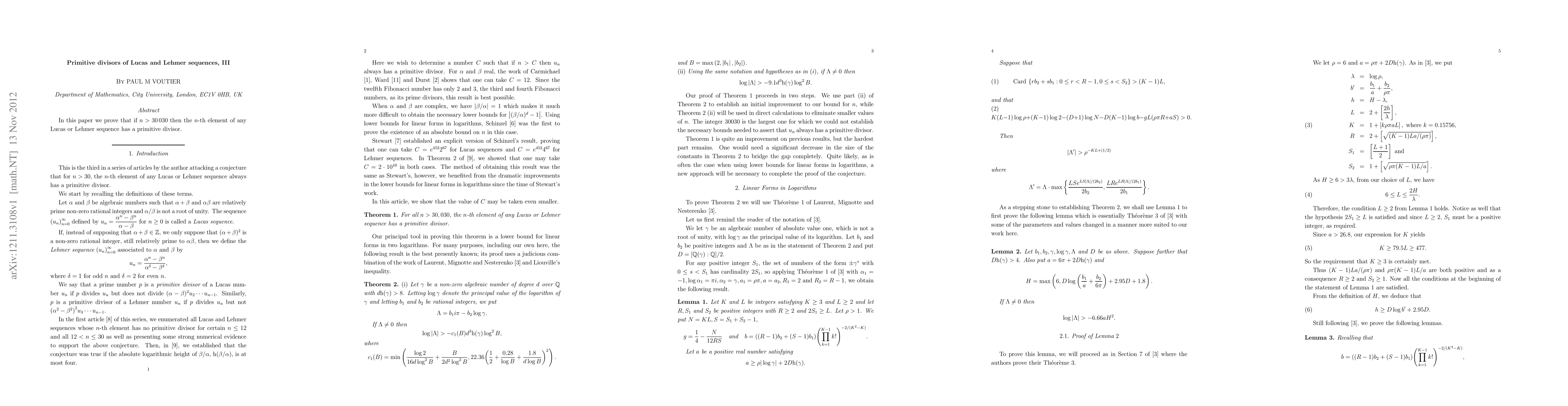 Summary: This paper demonstrates that for any Lucas or Lehmer sequence, if the index $n$ exceeds 30,030, the $n$-th term will invariably possess a primitive divisor. This finding reinforces the existence of primitive divisors in these specific sequences for large indices.