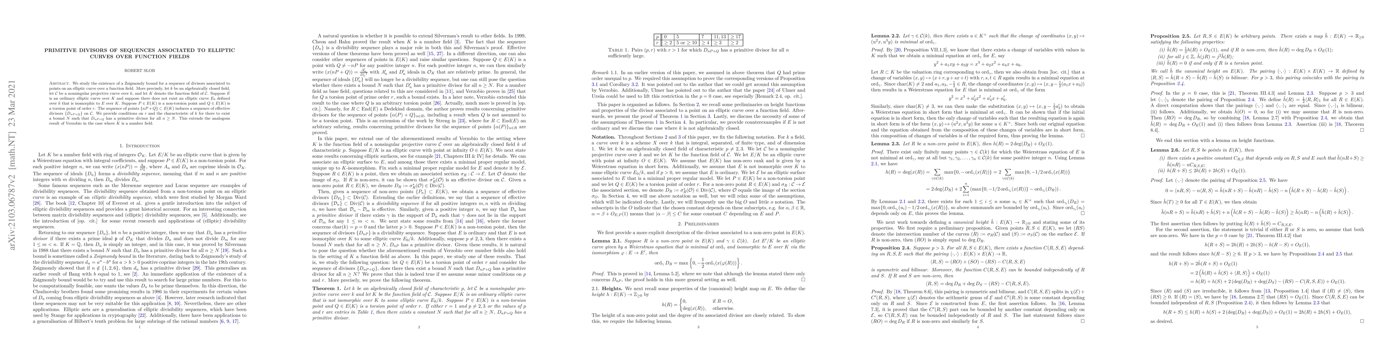 This paper investigates the existence of a Zsigmondy bound for sequences of divisors linked to points on elliptic curves over function fields, extending Verzobio's result for number fields. It provides conditions on the torsion order and field characteristic ensuring the presence of primitive divisors in the divisor sequence beyond a certain index.