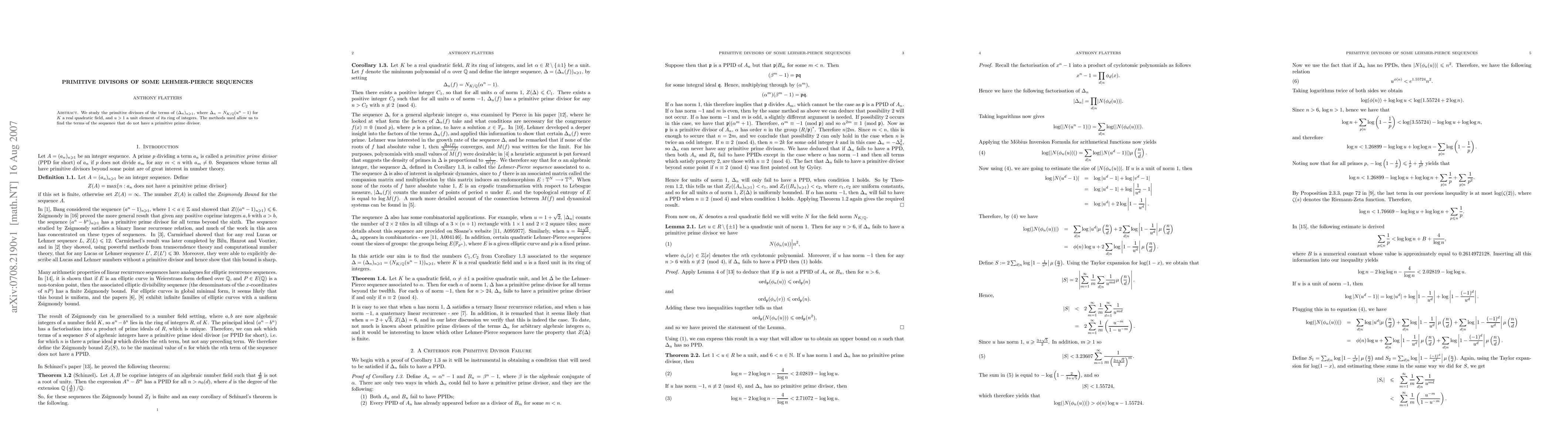 We study the primitive divisors of the terms of $(\Delta_n)_{n \geq 1}$, where $\Delta_n=N_{K/ \mathbb{Q}}(u^n-1)$ for $K$ a real quadratic field, and $u>1$ a unit element of its ring of integers. The methods used allow us to find the terms of the sequence that do not have a primitive prime divisor.
