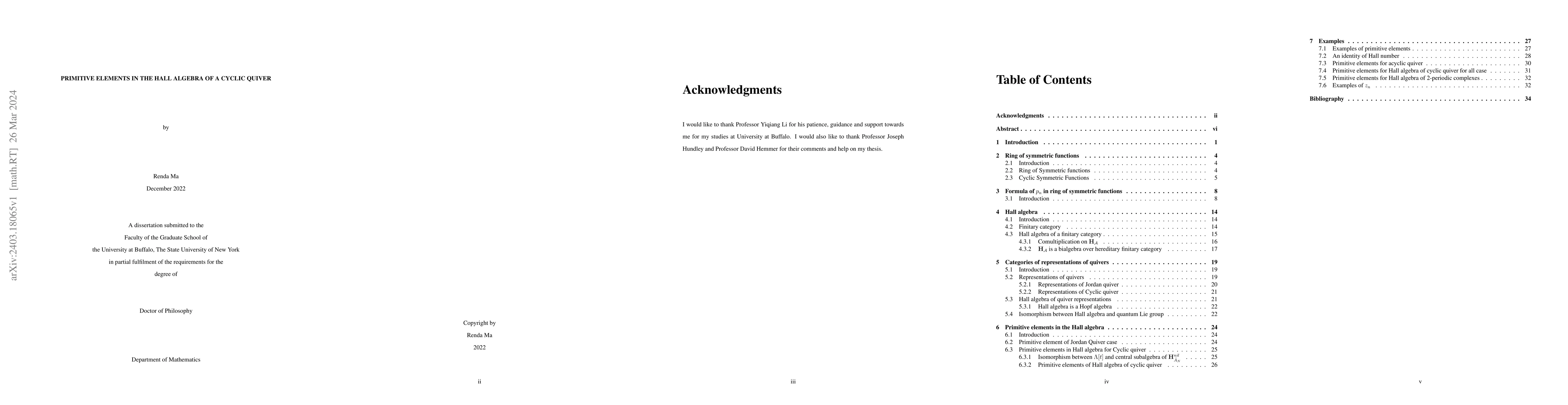 We provide an explicit formula for primitive elements in the Hall algebras of nilpotent representations of cyclic quivers.