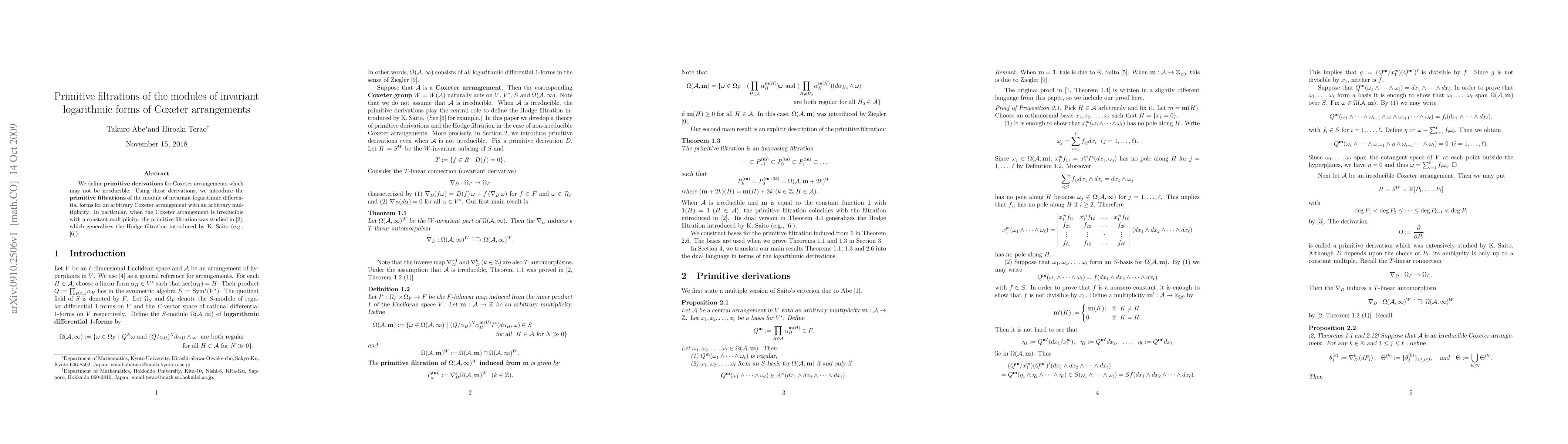 We define {\bf primitive derivations} for Coxeter arrangements which may not be irreducible. Using those derivations, we introduce the {\bf primitive filtrations} of the module of invariant logarithmic differential forms for an arbitrary Coxeter arrangement with an arbitrary multiplicity. In particular, when the Coxeter arrangement is irreducible with a constant multiplicity, the primitive filtration has already been studied, which generalizes the Hodge filtration introduced by K. Saito.