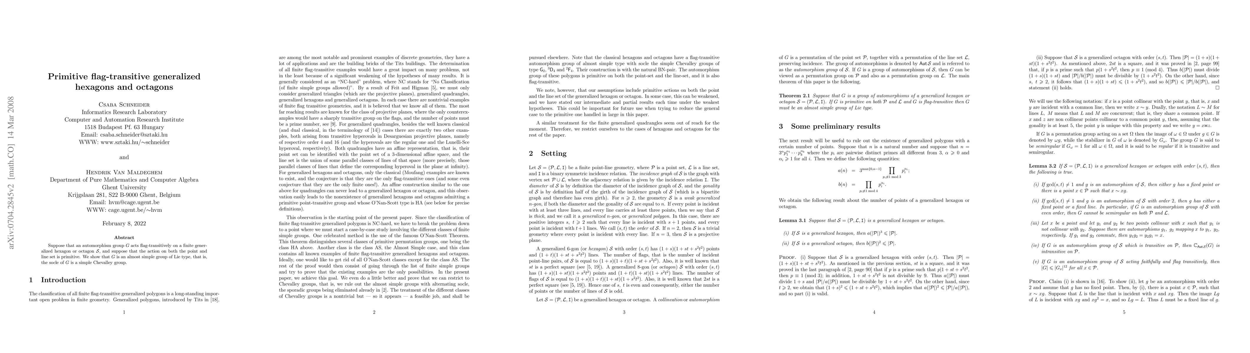 Summary: This paper demonstrates that the automorphism group $G$ of a flag-transitive, primitive generalized hexagon or octagon is almost simple with a socle comprising a simple Chevalley group of Lie type.