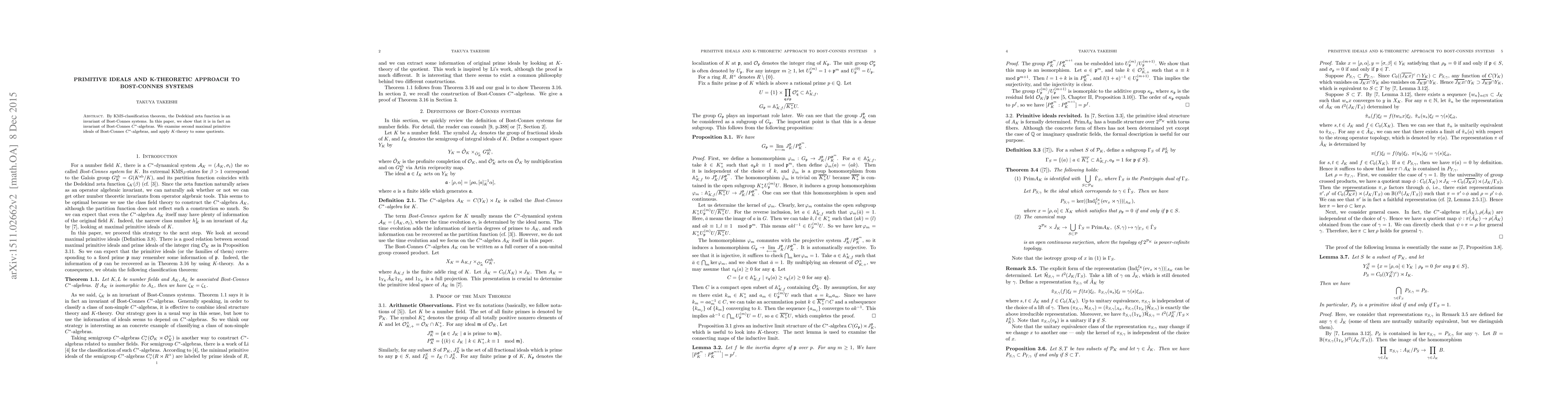 This paper explores the Dedekind zeta function's role as an invariant in Bost-Connes systems, specifically within Bost-Connes $C^*$-algebras. It investigates the second maximal primitive ideals and employs $K$-theory to analyze certain quotients.