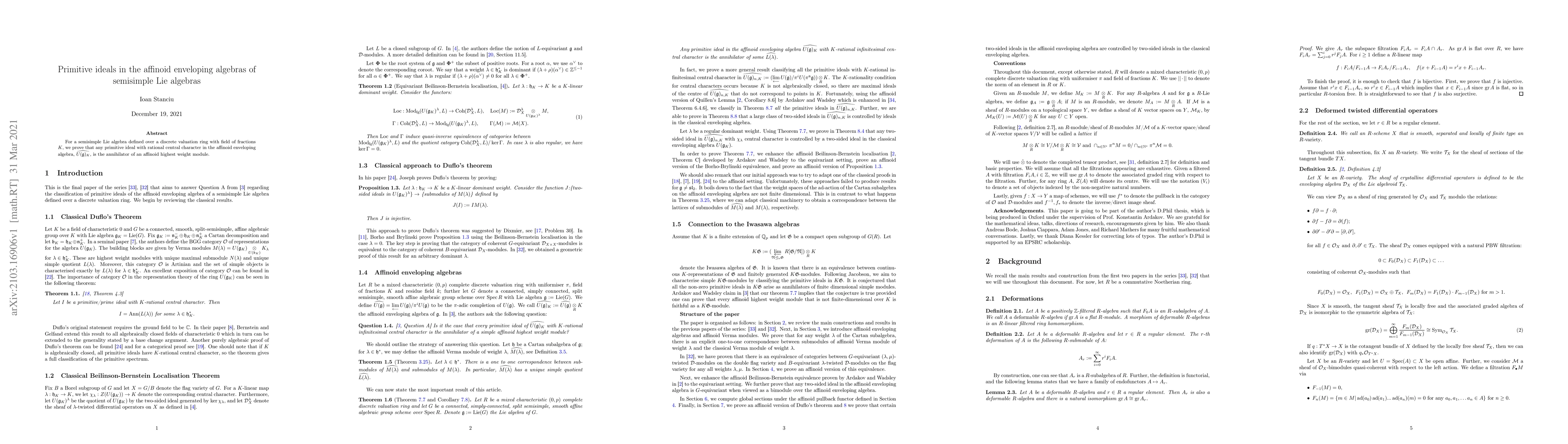 For a semisimple Lie algebra defined over a discrete valuation ring with field of fractions $K$, we prove that any primitive ideal with rational central character in the affinoid enveloping algebra, $\widehat{U(\mathfrak{g})_{K}},$ is the annihilator of an affinoid highest weight module.