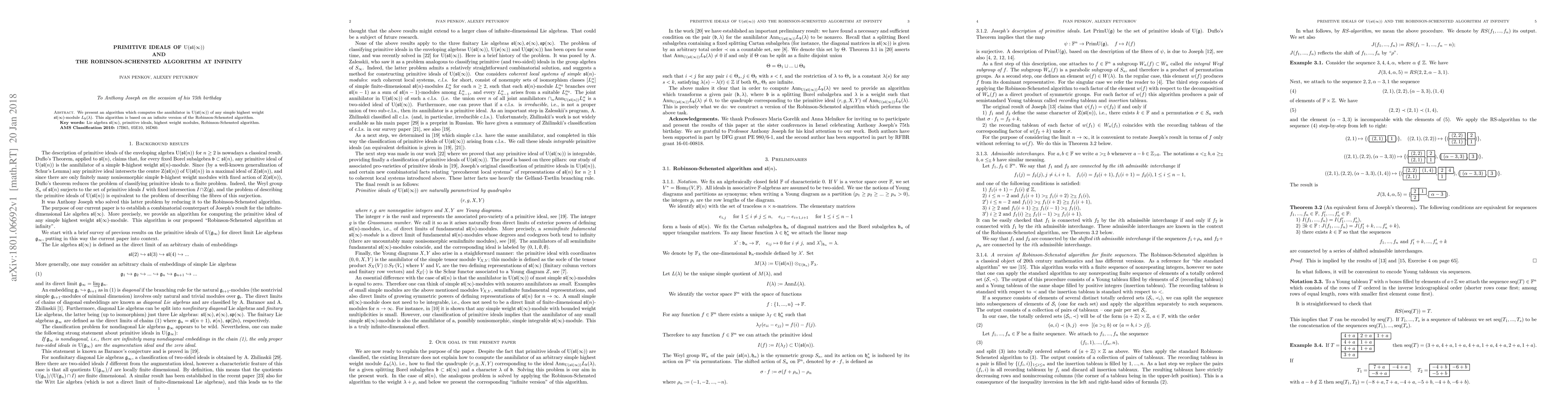 Summary: This paper introduces an algorithm to determine the annihilator in ${\rm U}(\frak{sl}(\infty))$ for simple highest weight modules, utilizing an infinite version of the Robinson-Schensted algorithm. The method provides insights into primitive ideals within the universal enveloping algebra.