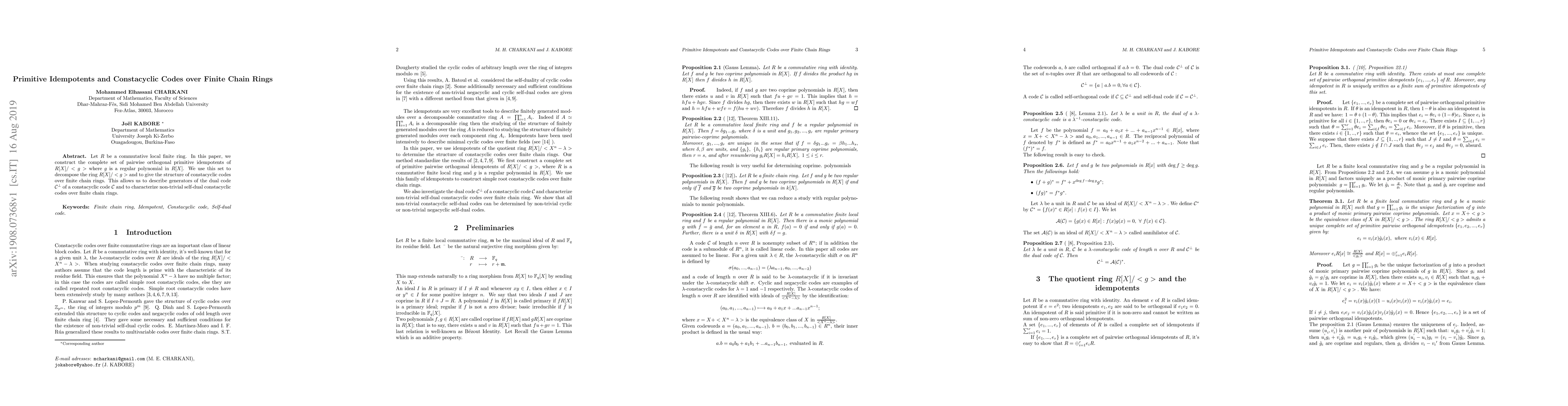 This paper constructs the complete set of pairwise orthogonal primitive idempotents for $R[X]/<g>$ over a commutative local finite ring $R$, using this to decompose the ring and describe the structure of constacyclic codes, including generators for the dual code and characterization of self-dual constacyclic codes over finite chain rings.