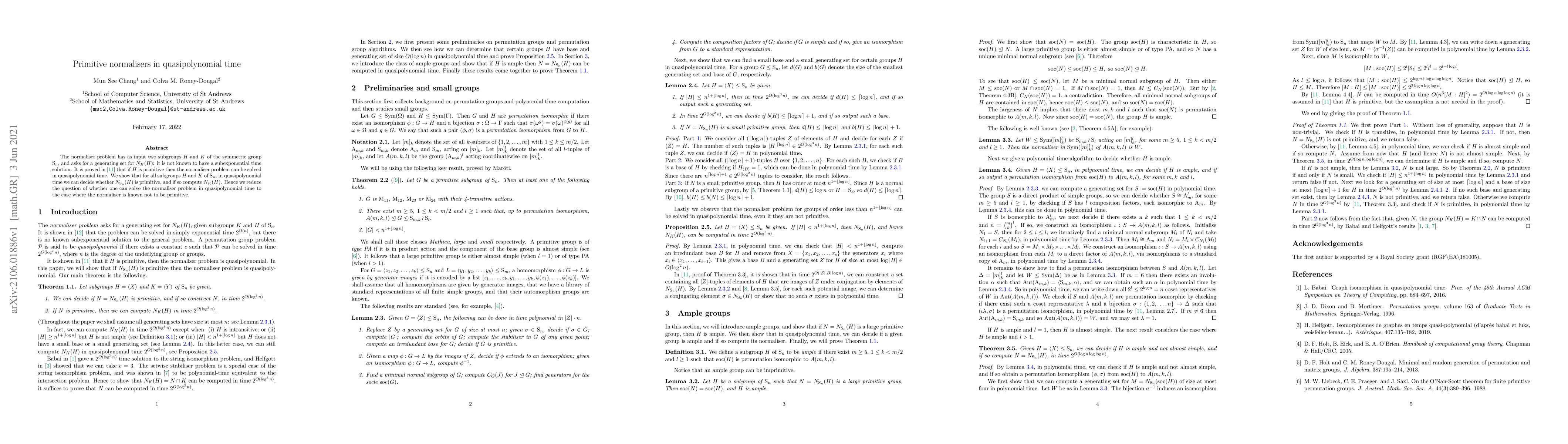 The normaliser problem has as input two subgroups $H$ and $K$ of the symmetric group $S_n$, and asks for a generating set for $N_K(H)$: it is not known to have a subexponential time solution. It is proved in [Roney-Dougal & Siccha, 2020] that if $H$ is primitive then the normaliser problem can be solved in quasipolynomial time. We show that for all subgroups $H$ and $K$ of $S_n$, in quasipolynomial time we can decide whether $N_{S_n}(H)$ is primitive, and if so compute $N_K(H)$. Hence we reduce the question of whether one can solve the normaliser problem in quasipolynomial time to the case where the normaliser is known not to be primitive.