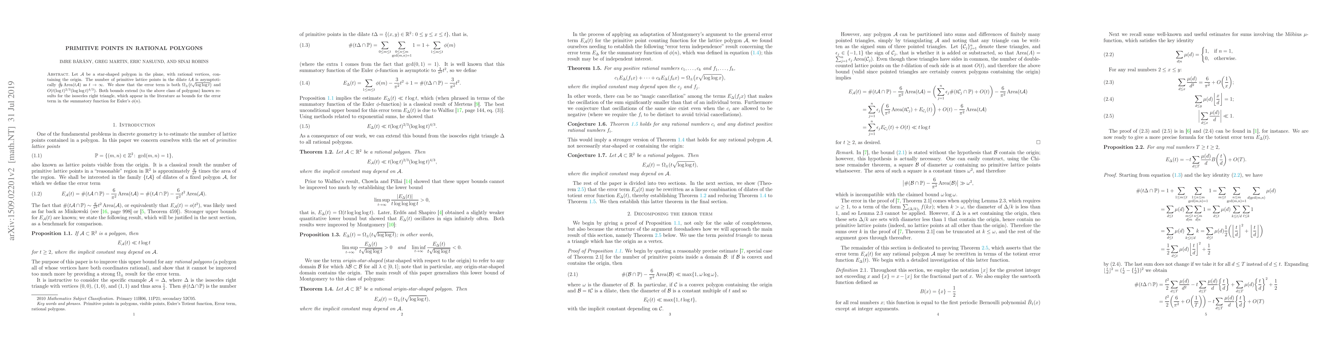 Let $\mathcal A$ be a star-shaped polygon in the plane, with rational vertices, containing the origin. The number of primitive lattice points in the dilate $t\mathcal A$ is asymptotically $\frac6{\pi^2}$ Area$(t\mathcal A)$ as $t\to \infty$. We show that the error term is both $\Omega_\pm\big( t\sqrt{\log\log t} \big)$ and $O(t(\log t)^{2/3}(\log\log t)^{4/3})$. Both bounds extend (to the above class of polygons) known results for the isosceles right triangle, which appear in the literature as bounds for the error term in the summatory function for Euler's $\phi(n)$.