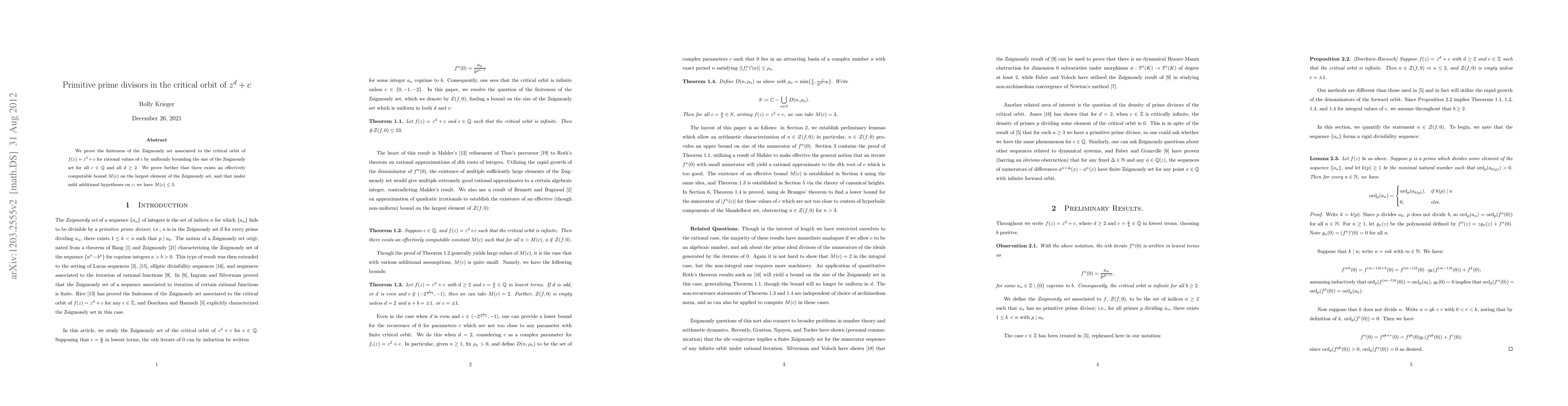 This paper proves the finiteness of the Zsigmondy set for the critical orbit of the polynomial f(z) = z^d + c, providing an effective bound on its size. For non-recurrent cases, it computes the set explicitly using dynamical height bounds, while employing Thue-style Diophantine approximation and complex-analytic methods for general cases.