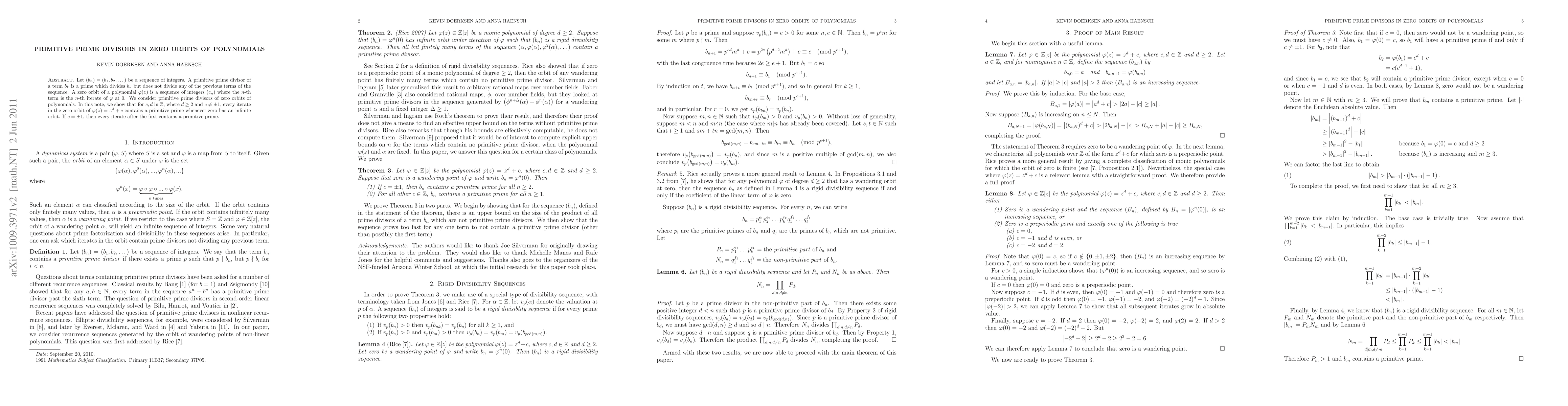 This research has implications for our understanding of polynomial arithmetic dynamics and the distribution of primitive primes.