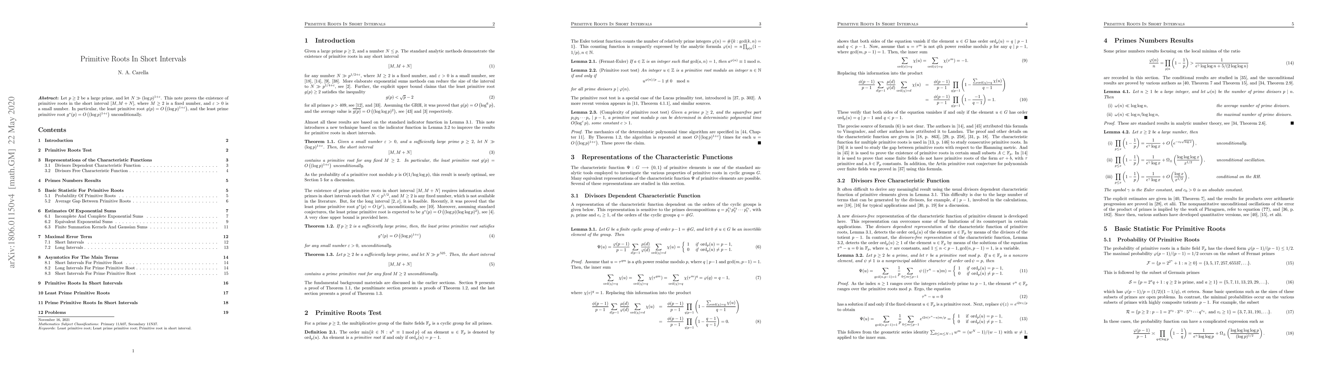 This paper demonstrates the existence of primitive roots within the interval $[M, M+N]$ for large primes $p$, where $N$ is significantly larger than $(\log p)^{1+\varepsilon}$. It provides unconditional bounds for the least primitive root and the least prime primitive root, both $O((\log p)^{1+\varepsilon})$.