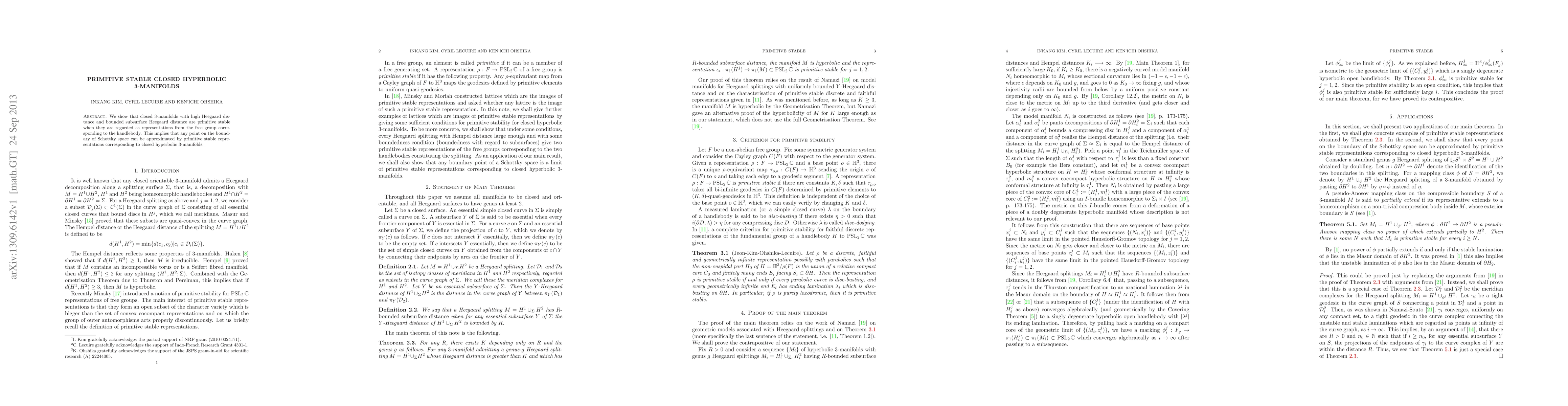 This paper demonstrates that closed hyperbolic 3-manifolds with high Heegaard distance and bounded subsurface Heegaard distance are primitive stable. It also shows that points on the boundary of Schottky space can be approximated by primitive stable representations from closed hyperbolic 3-manifolds.