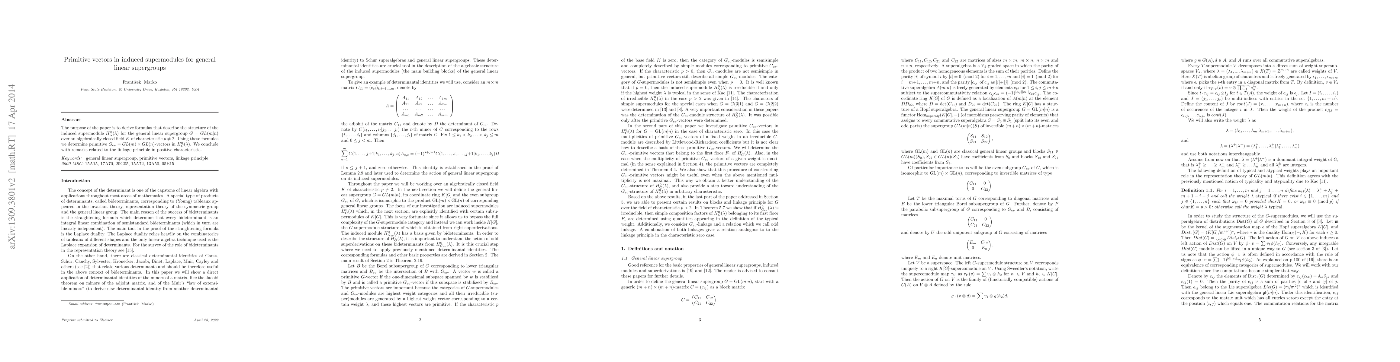 This paper derives formulas for the structure of induced supermodules H^0_G(\lambda) for the general linear supergroup G=GL(m|n), and determines primitive vectors in these modules, concluding with remarks on the linkage principle in positive characteristic.