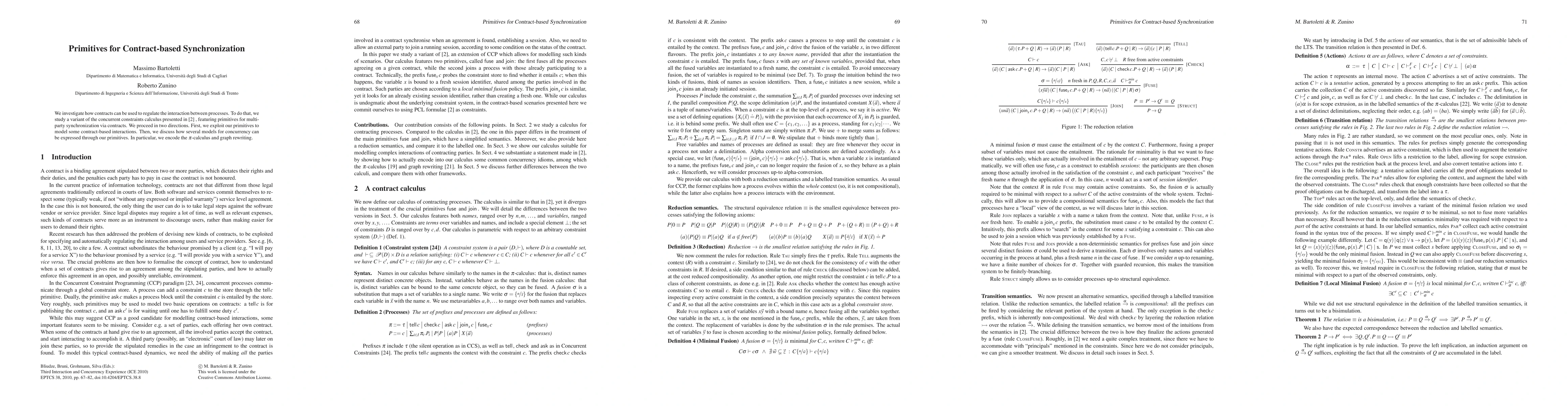 This research introduces primitives for contract-based synchronization in a variant of the concurrent constraints calculus, demonstrating their use in modeling contract-based interactions and encoding models like the pi-calculus and graph rewriting for concurrency.