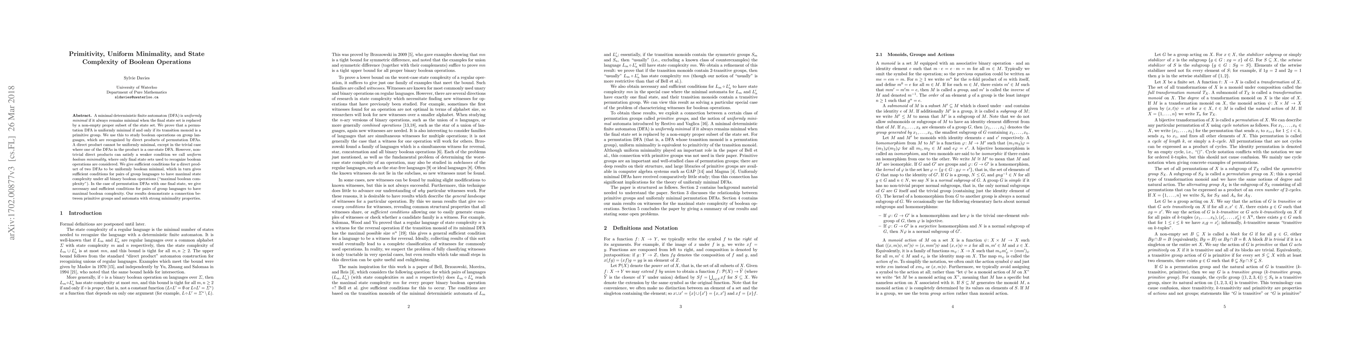 A minimal deterministic finite automaton (DFA) is uniformly minimal if it always remains minimal when the final state set is replaced by a non-empty proper subset of the state set. We prove that a permutation DFA is uniformly minimal if and only if its transition monoid is a primitive group. We use this to study boolean operations on group languages, which are recognized by direct products of permutation DFAs. A direct product cannot be uniformly minimal, except in the trivial case where one of the DFAs in the product is a one-state DFA. However, non-trivial direct products can satisfy a weaker condition we call uniform boolean minimality, where only final state sets used to recognize boolean operations are considered. We give sufficient conditions for a direct product of two DFAs to be uniformly boolean minimal, which in turn gives sufficient conditions for pairs of group languages to have maximal state complexity under all binary boolean operations ("maximal boolean complexity"). In the case of permutation DFAs with one final state, we give necessary and sufficient conditions for pairs of group languages to have maximal boolean complexity. Our results demonstrate a connection between primitive groups and automata with strong minimality properties.