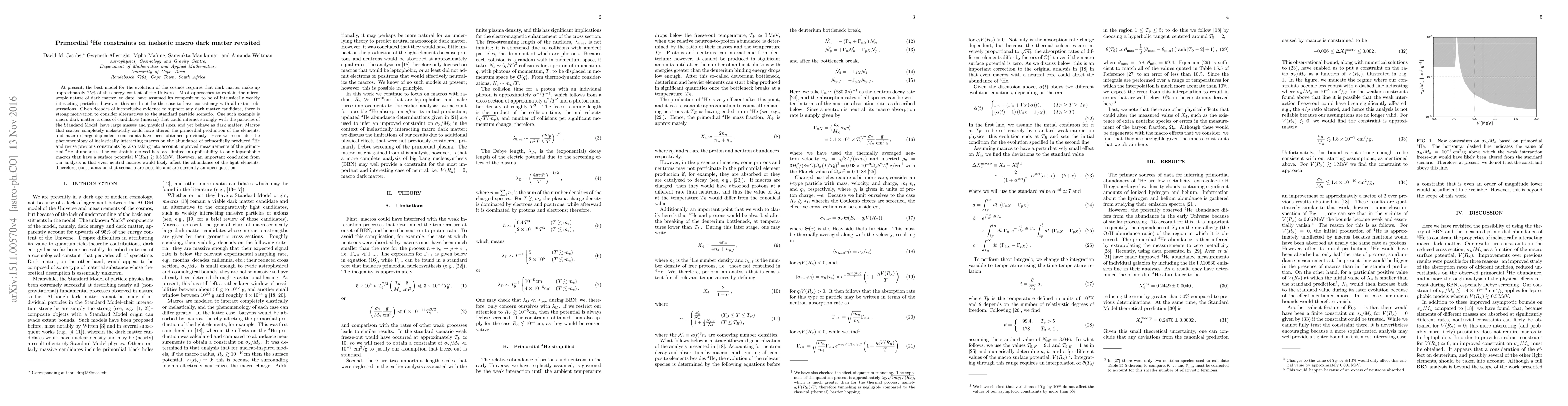 Researchers re-examine constraints on macro dark matter's effect on primordial $^4 ext{He}$ abundance, finding that even neutral macros could impact light element formation.