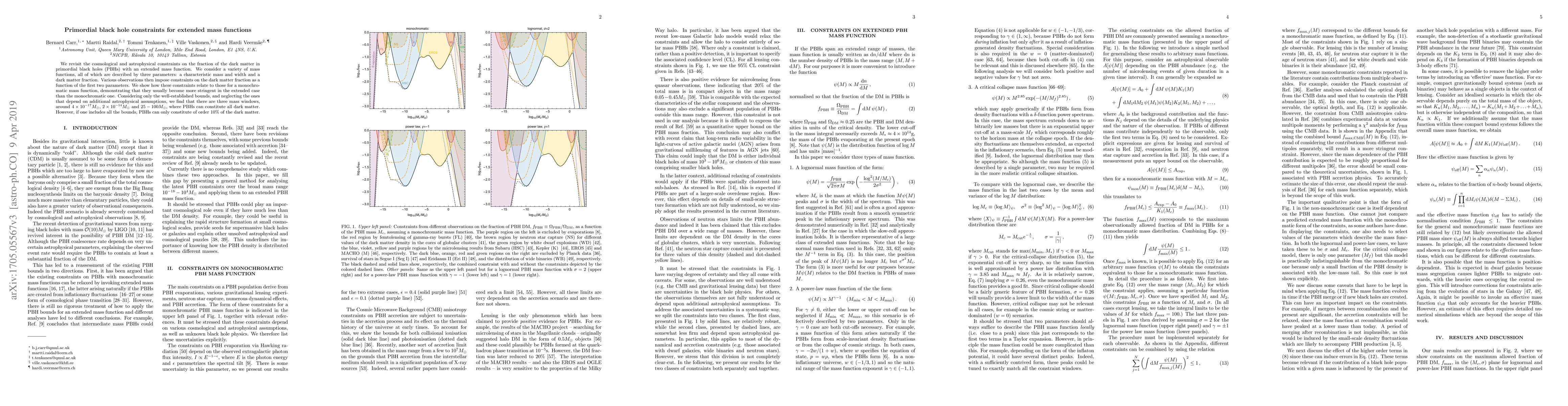We revisit the cosmological and astrophysical constraints on the fraction of the dark matter in primordial black holes (PBHs) with an extended mass function. We consider a variety of mass functions, all of which are described by three parameters: a characteristic mass and width and a dark matter fraction. Various observations then impose constraints on the dark matter fraction as a function of the first two parameters. We show how these constraints relate to those for a monochromatic mass function, demonstrating that they usually become more stringent in the extended case than the monochromatic one. Considering only the well-established bounds, and neglecting the ones that depend on additional astrophysical assumptions, we find that there are three mass windows, around $4\times 10^{-17}M_\odot,$ $2\times 10^{-14}M_\odot$ and $25-100M_\odot$, where PBHs can constitute all dark matter. However, if one includes all the bounds, PBHs can only constitute of order $10\%$ of the dark matter.