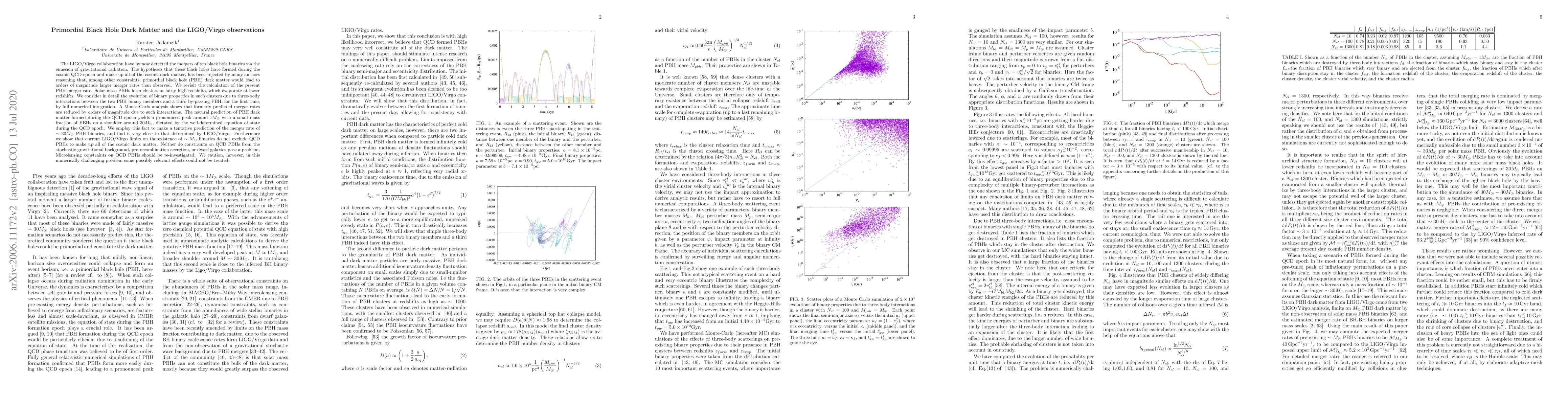 The LIGO/Virgo collaboration have by now detected the mergers of ten black hole binaries via the emission of gravitational radiation. The hypothesis that these black holes have formed during the cosmic QCD epoch and make up all of the cosmic dark matter, has been rejected by many authors reasoning that, among other constraints, primordial black hole (PBH) dark matter would lead to orders of magnitude larger merger rates than observed. We revisit the calculation of the present PBH merger rate. Solar mass PBHs form clusters at fairly high redshifts, which evaporate at lower redshifts. We consider in detail the evolution of binary properties in such clusters due to three-body interactions between the two PBH binary members and a third by-passing PBH, for the first time, by full numerical integration. A Monte-Carlo analysis shows that formerly predicted merger rates are reduced by orders of magnitude due to such interactions. The natural prediction of PBH dark matter formed during the QCD epoch yields a pronounced peak around $1M_{\odot}$ with a small mass fraction of PBHs on a shoulder around $30M_{\odot}$, dictated by the well-determined equation of state during the QCD epoch. We employ this fact to make a tentative prediction of the merger rate of $\sim 30M_{\odot}$ PBH binaries, and find it very close to that determined by LIGO/Virgo. Furthermore we show that current LIGO/Virgo limits on the existence of $\sim M_{\odot}$ binaries do not exclude QCD PBHs to make up all of the cosmic dark matter. Neither do constraints on QCD PBHs from the stochastic gravitational background, pre-recombination accretion, or dwarf galaxies pose a problem. Microlensing constraints on QCD PBHs should be re-investigated. We caution, however, in this numerically challenging problem some possibly relevant effects could not be treated.
