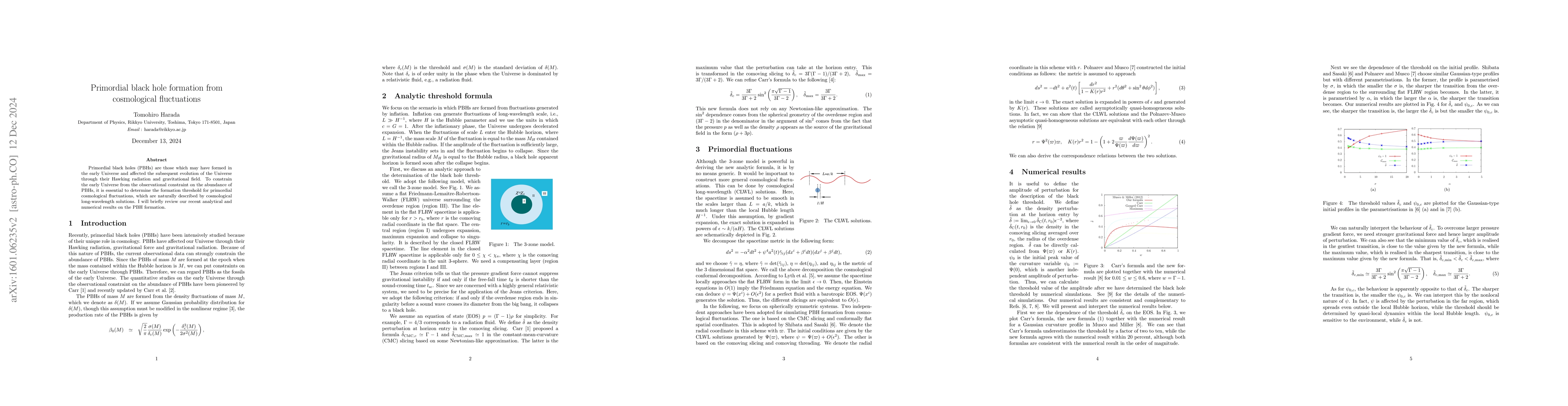 Summary: This paper reviews the formation of primordial black holes (PBHs) from cosmological fluctuations in the early Universe, emphasizing the critical threshold for their creation and the implications for understanding the Universe's evolution through observational constraints. Analytical and numerical results are presented to elucidate these processes.
