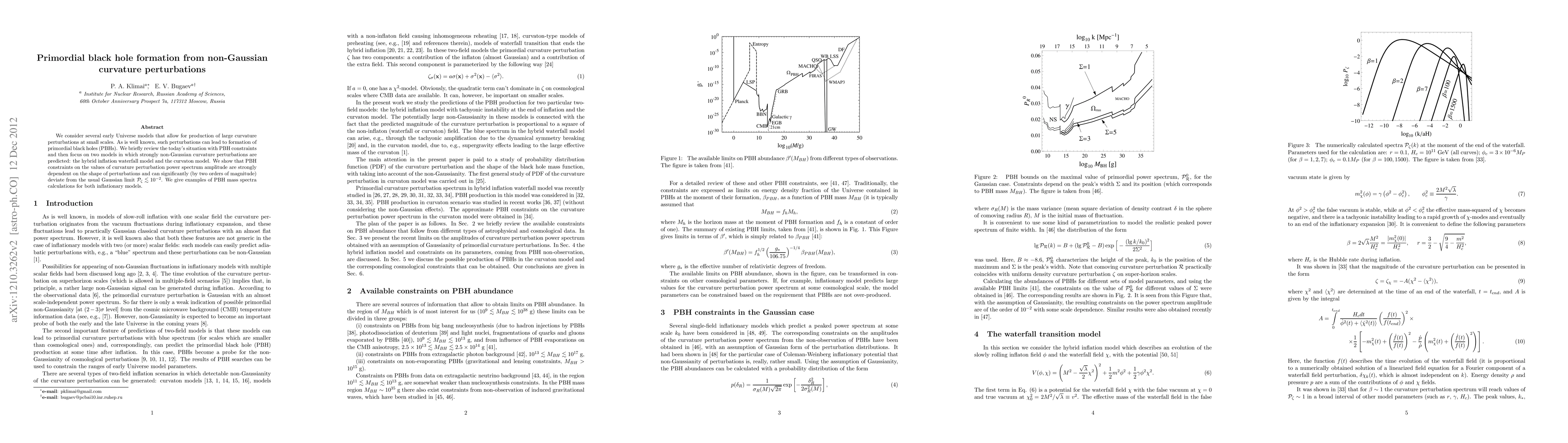 This paper explores early Universe models generating large non-Gaussian curvature perturbations, which can lead to the formation of primordial black holes (PBHs). It highlights that PBH constraints on curvature perturbation amplitudes can significantly deviate from the Gaussian limit, up to two orders of magnitude, and provides PBH mass spectra calculations for hybrid inflation and curvaton models.