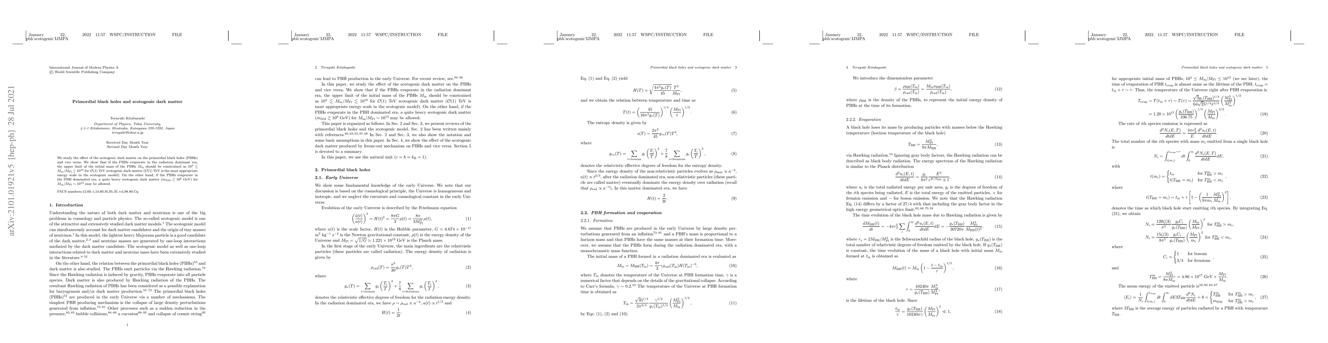 This paper investigates the interplay between primordial black holes (PBHs) and scotogenic dark matter, finding that the evaporation of PBHs in different eras constrains the mass of PBHs and the energy scale of scotogenic dark matter, suggesting a mass range for PBHs and a heavy dark matter mass for high initial PBH masses.