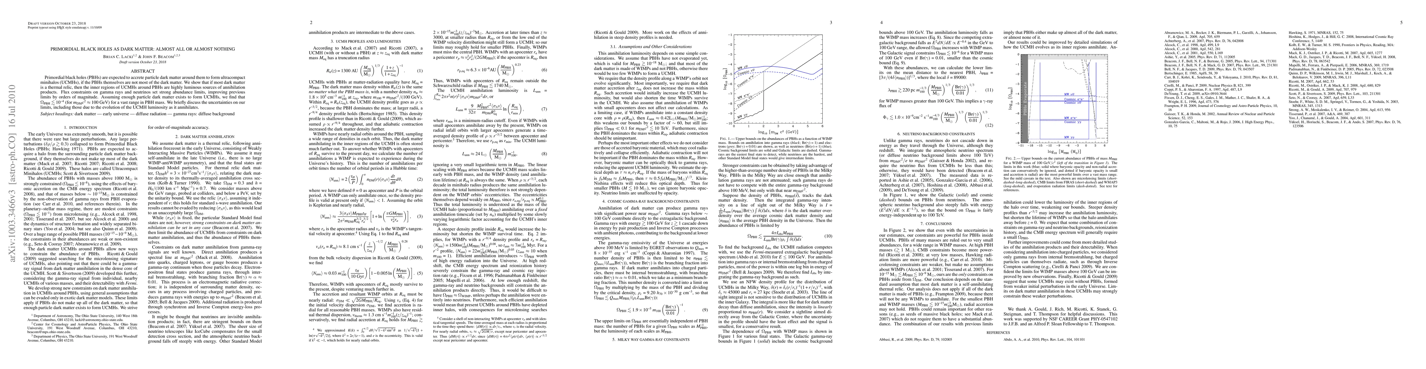 Primordial black holes (PBHs) are expected to accrete particle dark matter around them to form ultracompact minihalos (UCMHs), if the PBHs themselves are not most of the dark matter. We show that if most dark matter is a thermal relic, then the inner regions of UCMHs around PBHs are highly luminous sources of annihilation products. Flux constraints on gamma rays and neutrinos set strong abundance limits, improving previous limits by orders of magnitude. Assuming enough particle dark matter exists to form UCMHs, we find that Omega_PBH <~ 10^-4 (for m_DM c^2 ~ 100 GeV) for a vast range in PBH mass. We briefly discuss the uncertainties on our limits, including those due to the evolution of the UCMH luminosity as it annihilates.