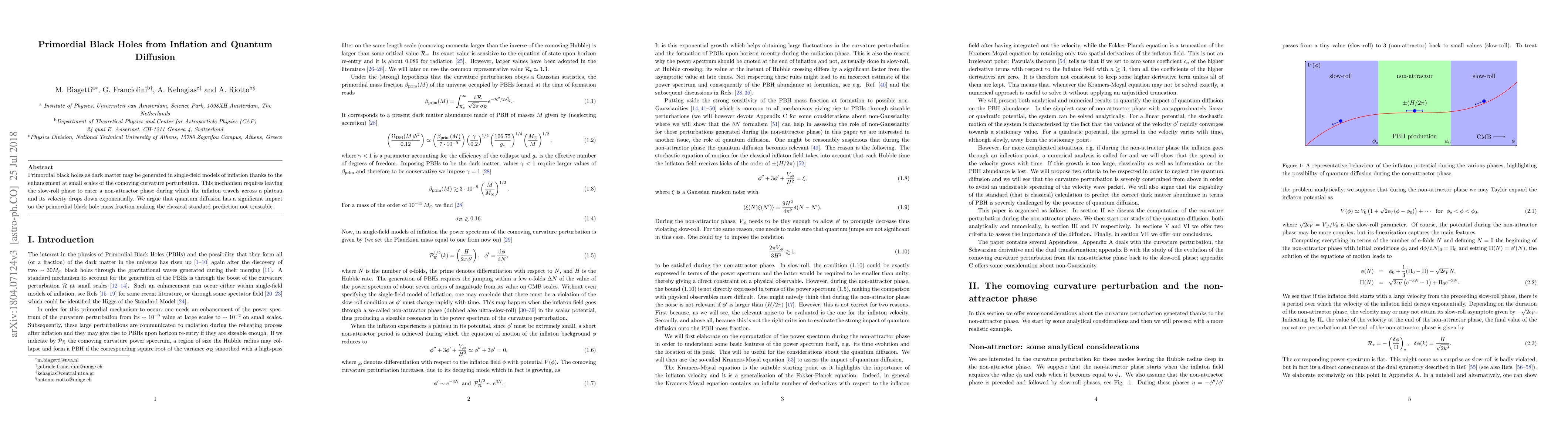 This paper explores the generation of primordial black holes as a potential dark matter component in single-field inflationary models, emphasizing the role of quantum diffusion in altering the classical prediction of their mass fraction. It suggests that the transition from slow-roll to a non-attractor phase during inflation significantly impacts the formation of these black holes.