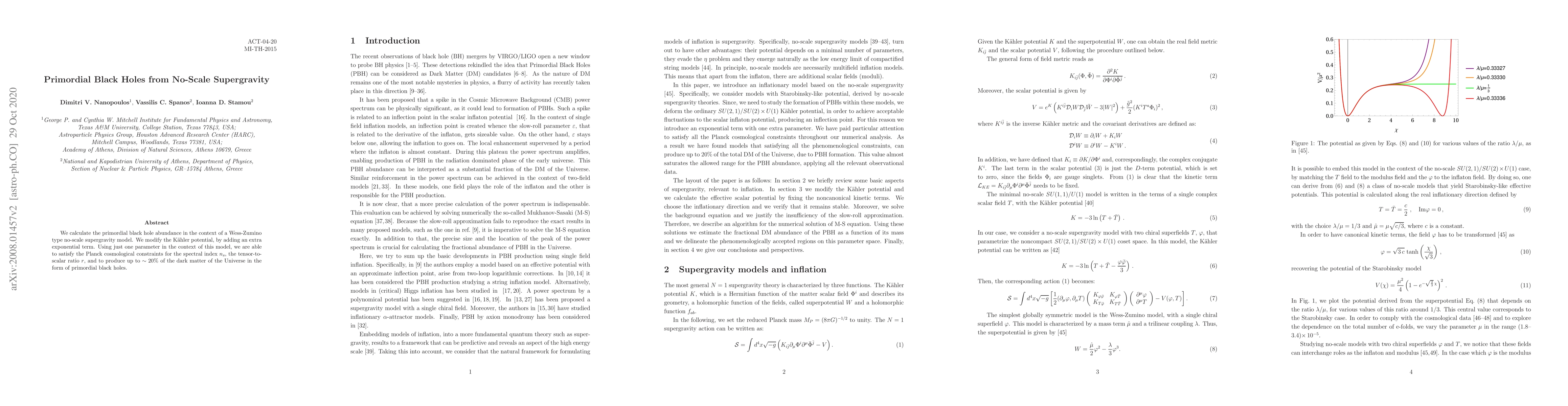 This paper calculates the abundance of primordial black holes within a Wess-Zumino type no-scale supergravity model, modifying the Kähler potential with an extra exponential term. It demonstrates that the model can meet Planck cosmological constraints and produce up to 20% of the Universe's dark matter as primordial black holes.