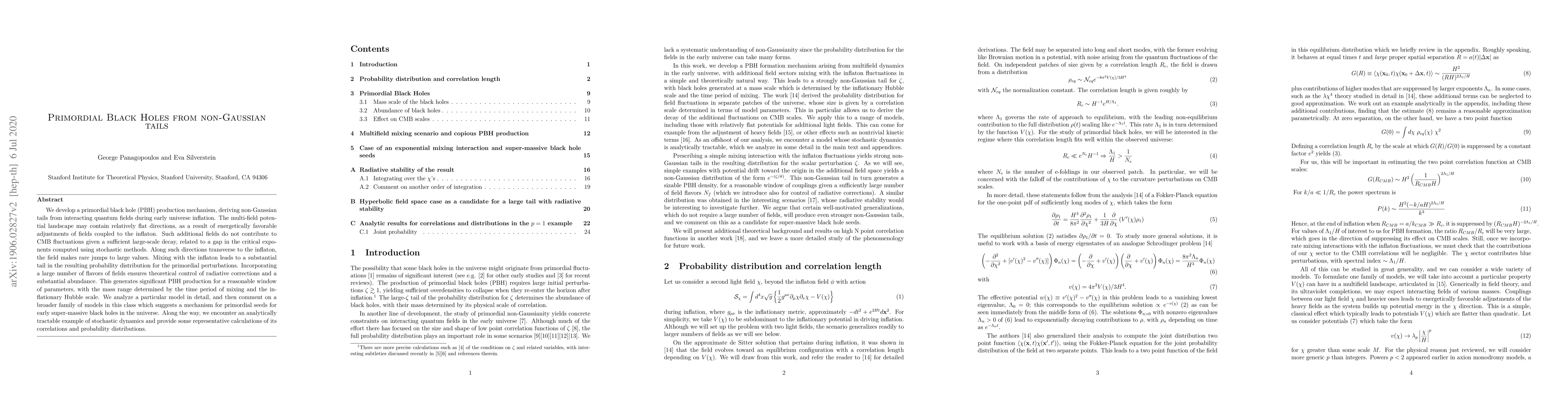 We develop a primordial black hole (PBH) production mechanism, deriving non-Gaussian tails from interacting quantum fields during early universe inflation. The multi-field potential landscape may contain relatively flat directions, as a result of energetically favorable adjustments of fields coupled to the inflaton. Such additional fields do not contribute to CMB fluctuations given a sufficient large-scale decay, related to a gap in the critical exponents computed using stochastic methods. Along such directions transverse to the inflaton, the field makes rare jumps to large values. Mixing with the inflaton leads to a substantial tail in the resulting probability distribution for the primordial perturbations. Incorporating a large number of flavors of fields ensures theoretical control of radiative corrections and a substantial abundance. This generates significant PBH production for a reasonable window of parameters, with the mass range determined by the time period of mixing and the inflationary Hubble scale. We analyze a particular model in detail, and then comment on a broader family of models in this class which suggests a mechanism for primordial seeds for early super-massive black holes in the universe. Along the way, we encounter an analytically tractable example of stochastic dynamics and provide some representative calculations of its correlations and probability distributions.