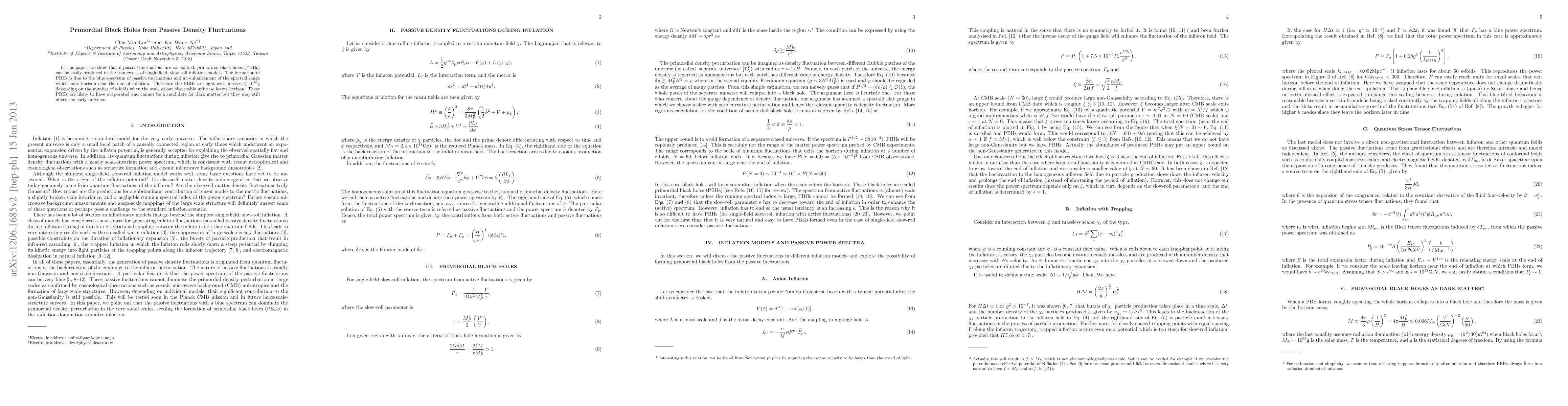 In this paper, we show that if passive fluctuations are considered, primordial black holes (PBHs) can be easily produced in the framework of single-field, slow-roll inflation models. The formation of PBHs is due to the blue spectrum of passive fluctuations and an enhancement of the spectral range which exits horizon near the end of inflation. Therefore the PBHs are light with masses $\lesssim 10^{15}g$ depending on the number of e-folds when the scale of our observable universe leaves horizon. These PBHs are likely to have evaporated and cannot be a candidate for dark matter but they may still affect the early universe.