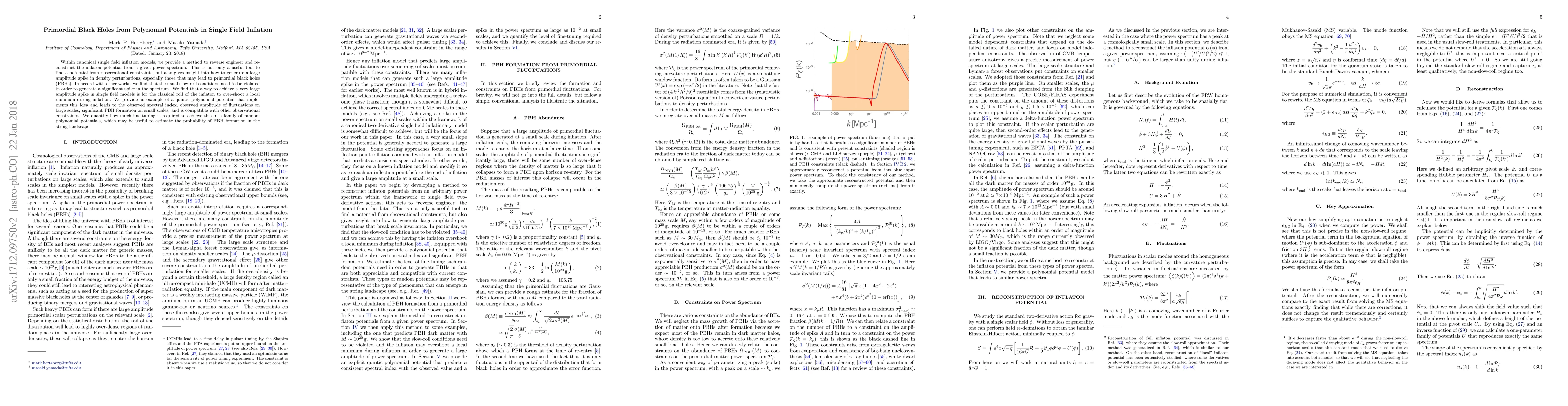 This paper proposes a method to reconstruct the inflaton potential from observational constraints, demonstrating how large amplitude spikes in density perturbations can lead to primordial black hole formation. It shows that violating slow-roll conditions and allowing the inflaton to overshoot a local minimum can generate significant spikes, exemplified by a quintic polynomial potential.