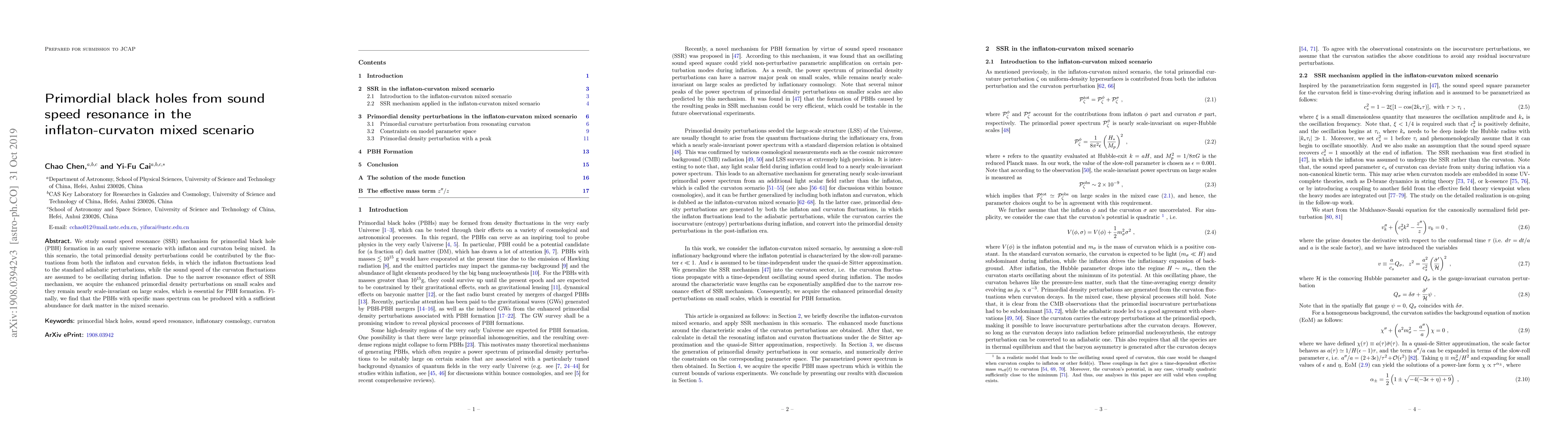 This paper investigates the sound speed resonance mechanism for the formation of primordial black holes in an early universe scenario where both inflaton and curvaton fields contribute to primordial density perturbations. The study finds that this mechanism can produce a specific mass spectrum of PBHs, sufficient in abundance to potentially account for dark matter.