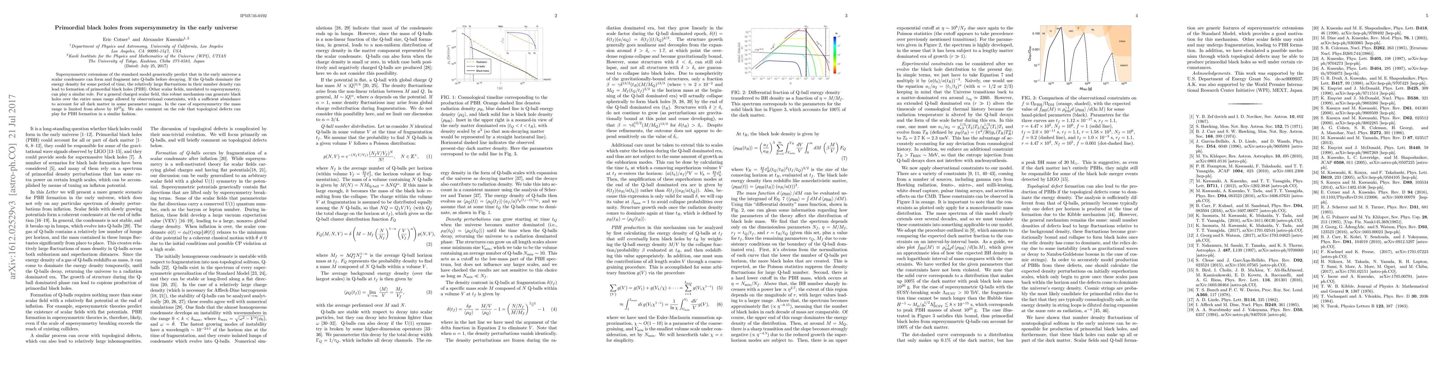 This paper explores the formation of primordial black holes (PBH) in the early universe through the decay of Q-balls from supersymmetric scalar condensates. It suggests that these fluctuations could generate PBHs over a wide mass range, potentially accounting for all dark matter under certain conditions.