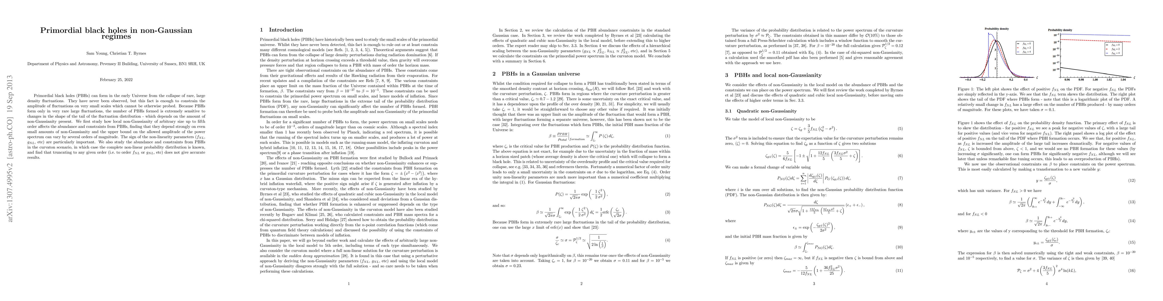 Primordial black holes (PBHs) can form in the early Universe from the collapse of rare, large density fluctuations. They have never been observed, but this fact is enough to constrain the amplitude of fluctuations on very small scales which cannot be otherwise probed. Because PBHs form only in very rare large fluctuations, the number of PBHs formed is extremely sensitive to changes in the shape of the tail of the fluctuation distribution - which depends on the amount of non-Gaussianity present. We first study how local non-Gaussianity of arbitrary size up to fifth order affects the abundance and constraints from PBHs, finding that they depend strongly on even small amounts of non-Gaussianity and the upper bound on the allowed amplitude of the power spectrum can vary by several orders of magnitude. The sign of the non-linearity parameters (f_{NL}, g_{NL}, etc) are particularly important. We also study the abundance and constraints from PBHs in the curvaton scenario, in which case the complete non-linear probability distribution is known, and find that truncating to any given order (i.e. to order f_{NL} or g_{NL}, etc) does not give accurate results.
