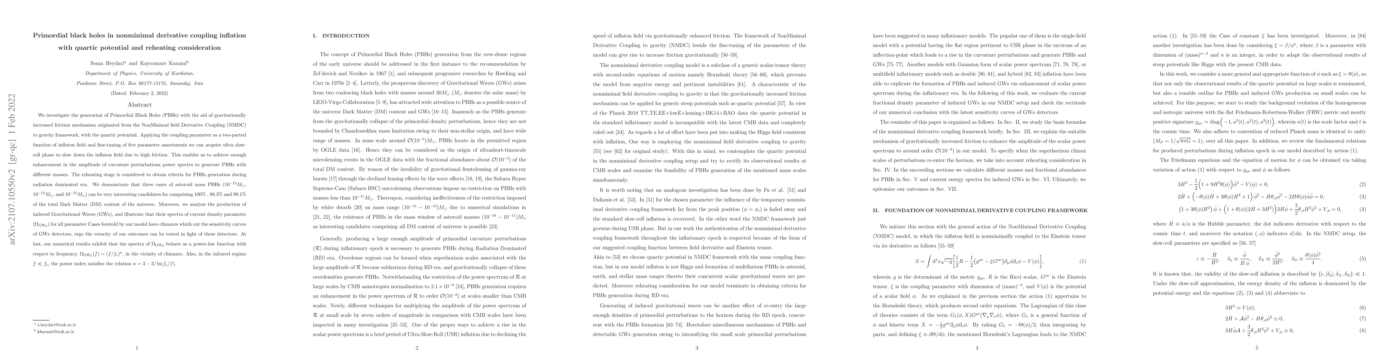 This paper explores the formation of Primordial Black Holes (PBHs) in a NonMinimal field Derivative Coupling (NMDC) inflation model with a quartic potential, emphasizing the role of gravitationally increased friction. It suggests that PBHs of asteroid masses could constitute significant portions of Dark Matter and predicts detectable Gravitational Wave spectra from the model.