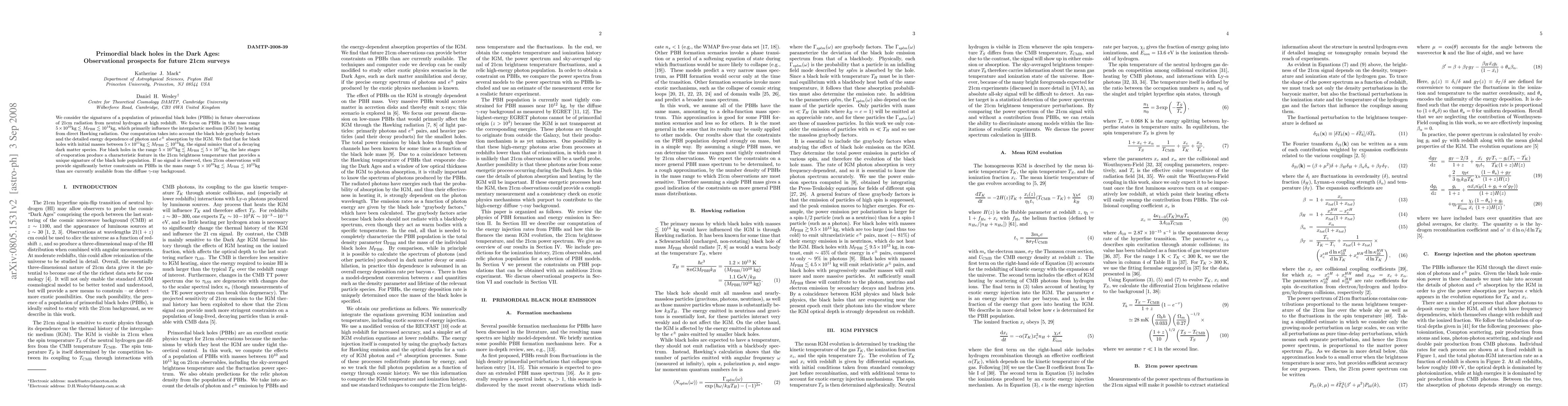 This paper explores the potential observational signatures of primordial black holes (PBHs) in future 21cm surveys during the Dark Ages, focusing on PBHs in the mass range $5 \times 10^{10} kg \lesssim M_{PBH} \lesssim 10^{14} kg$. It finds unique 21cm brightness temperature features from evaporating PBHs and suggests that future observations could either detect these signatures or provide stronger constraints on PBHs than current gamma-ray data.