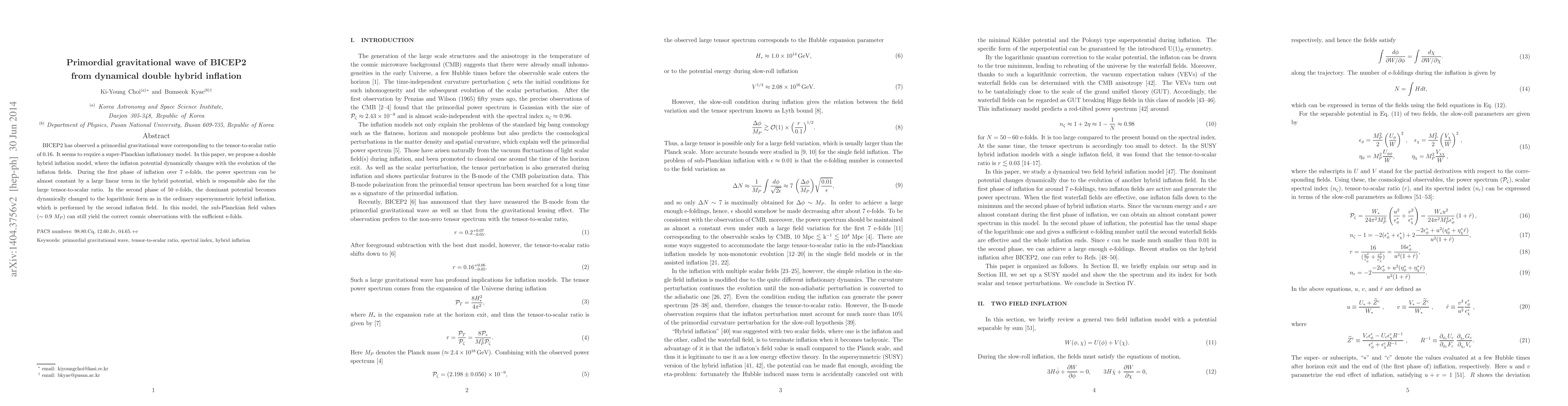 BICEP2 has observed a primordial gravitational wave corresponding to the tensor-to-scalar ratio of 0.16. It seems to require a super-Planckian inflationary model. In this paper, we propose a double hybrid inflation model, where the inflaton potential dynamically changes with the evolution of the inflaton fields. During the first phase of inflation over 7 e-folds, the power spectrum can be almost constant by a large linear term in the hybrid potential, which is responsible also for the large tensor-to-scalar ratio. In the second phase of 50 e-folds, the dominant potential becomes dynamically changed to the logarithmic form as in the ordinary supersymmetric hybrid inflation, which is performed by the second inflaton field. In this model, the sub-Planckian field values (~0.9 M_P) can still yield the correct cosmic observations with the sufficient e-folds.