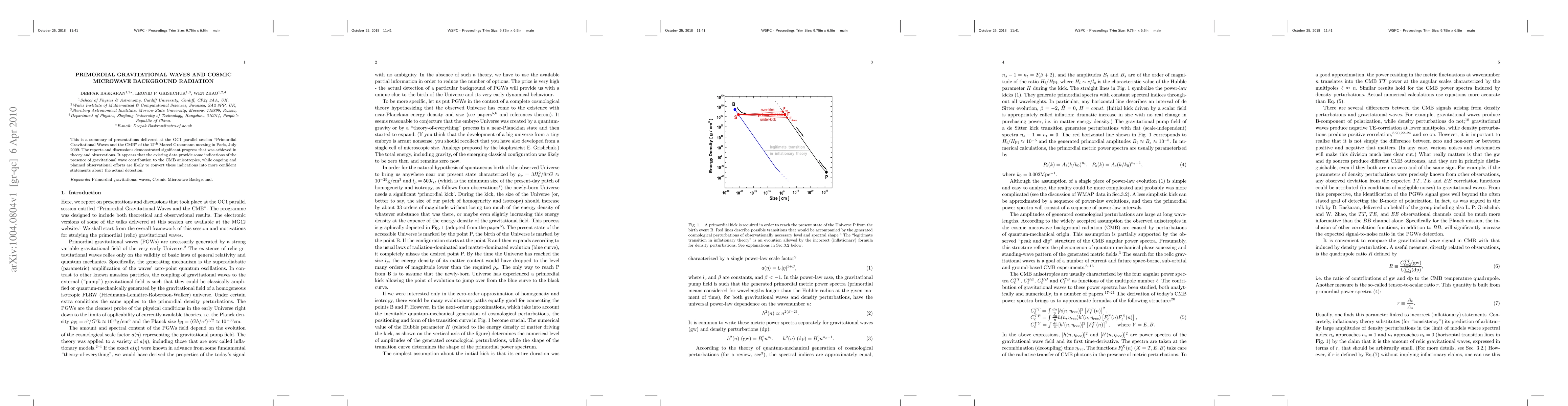 This is a summary of presentations delivered at the OC1 parallel session "Primordial Gravitational Waves and the CMB" of the 12th Marcel Grossmann meeting in Paris, July 2009. The reports and discussions demonstrated significant progress that was achieved in theory and observations. It appears that the existing data provide some indications of the presence of gravitational wave contribution to the CMB anisotropies, while ongoing and planned observational efforts are likely to convert these indications into more confident statements about the actual detection.
