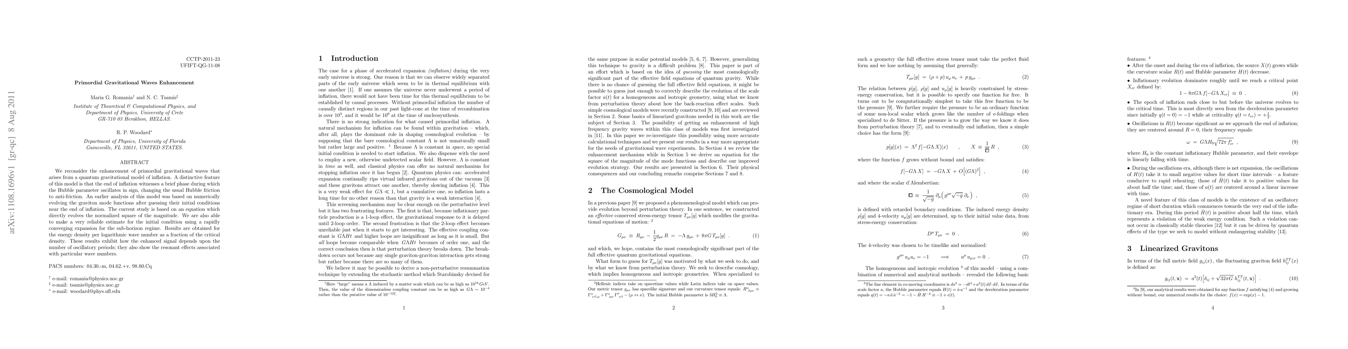 Researchers studied how primordial gravitational waves are enhanced in a quantum model of inflation, finding that their signal depends on the number of oscillatory periods and exhibits resonant effects.