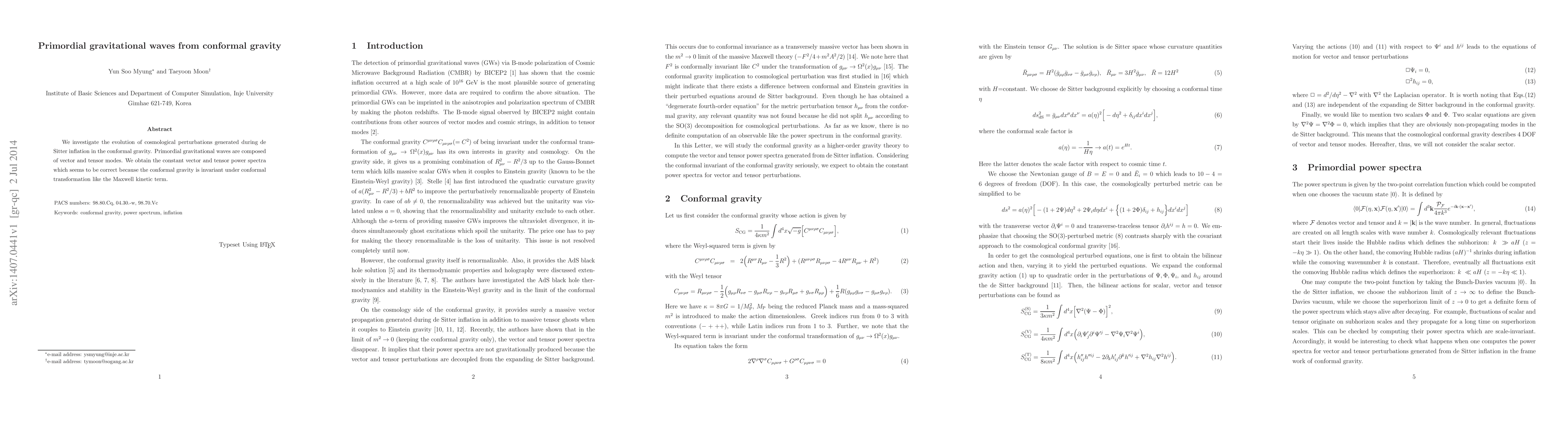 The use of conformal gravity to generate constant vector and tensor powerspectra during de Sitter inflation is a novel contribution to the field
