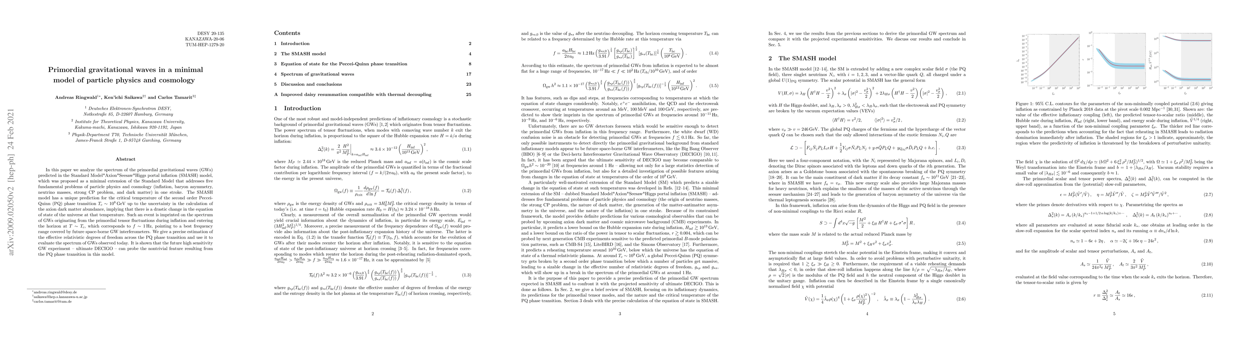 Future space-borne GW interferometers can detect a unique feature in primordial gravitational waves caused by a drastic change in the universe's equation of state at $T imes 10^8 ext{ GeV}$, predicted by the SMASH model.