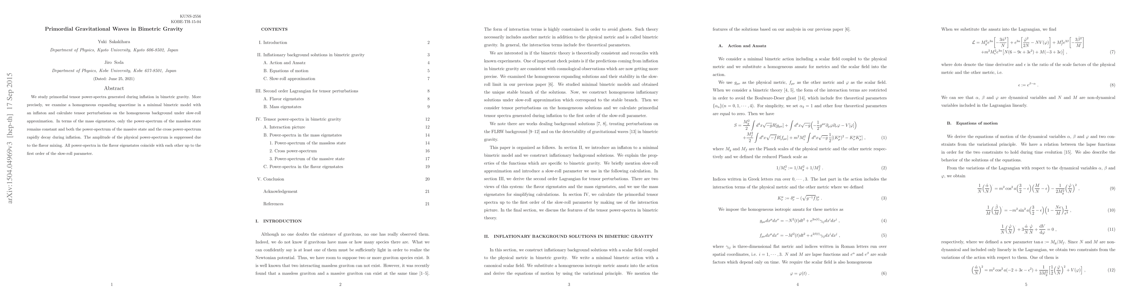 This paper studies primordial gravitational waves in bimetric gravity, finding that only the power-spectrum of the massless state remains constant during inflation, while the massive state's power-spectrum rapidly decays.