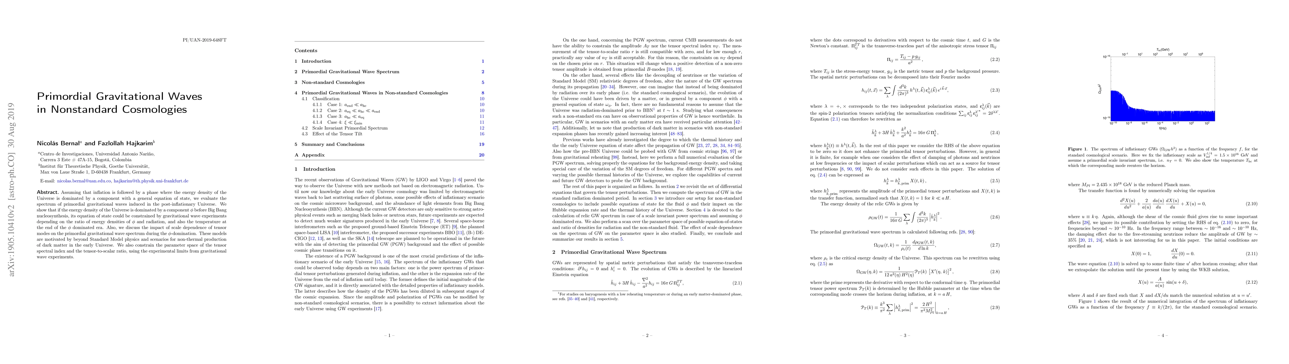 The paper presents a detailed analysis of gravitational wave spectra under nonstandard cosmological conditions, introducing a framework to evaluate these spectra based on the general equation of state parameter $\omega_\phi$ and the ratio $\xi$ of $\phi$ to radiation energy densities.
